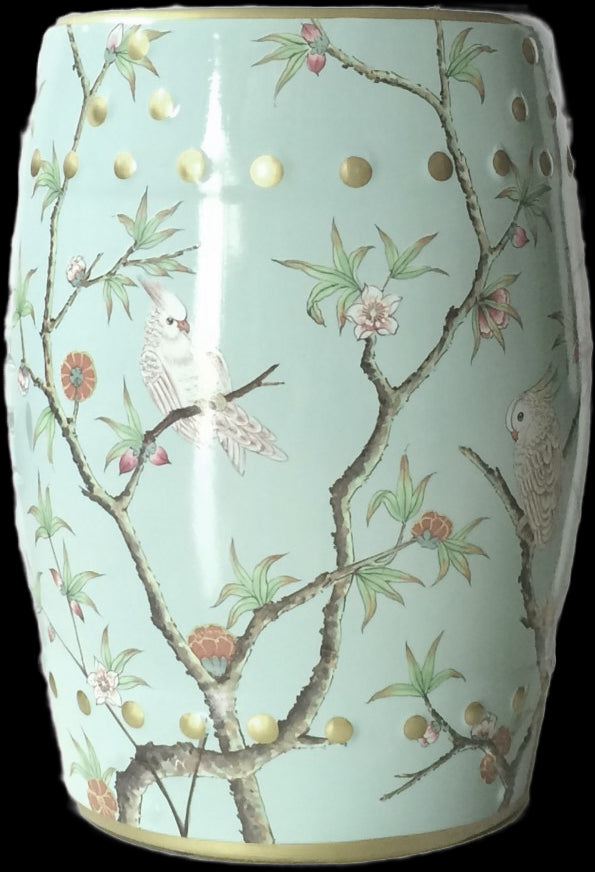 Fine Asianliving Keramische Kruk Blauw Papagaaien