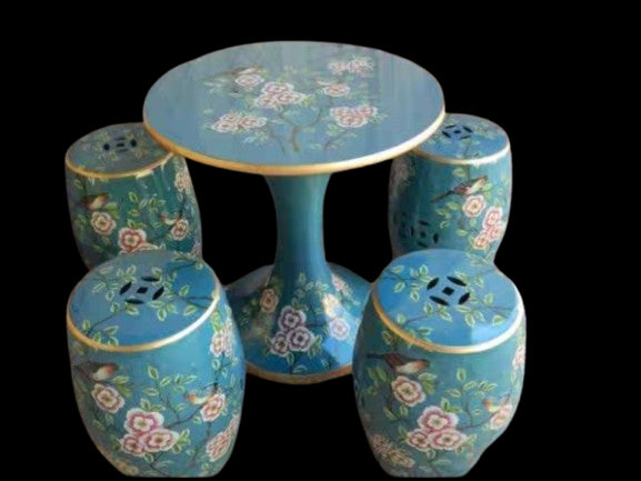 Fine Asianliving Keramische Kruk en Tafel Bloemen
