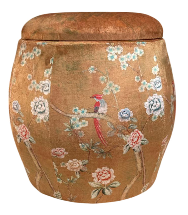 Fine Asianliving Velours Poef met Opbergruimte Rond