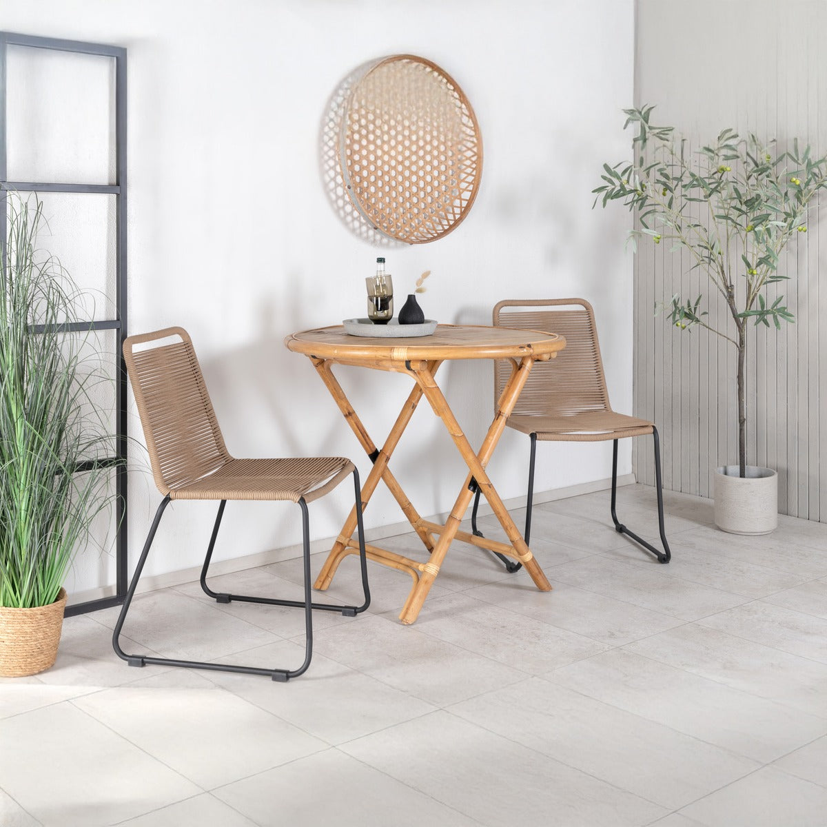 Materiaal: De Fjôrd Bistrotafel is vervaardigd met een rotan tafelblad en een bamboe onderstel. Rotan staat bekend om zijn flexibiliteit en duurzaamheid, terwijl bamboe een milieuvriendelijke keuze is die stevigheid en een natuurlijke uitstraling biedt.