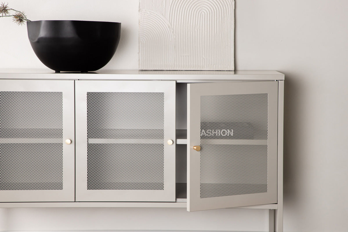 Materiaal: Het dressoir is gemaakt van duurzaam staal, wat zorgt voor een stevige constructie en een lange levensduur. Dit materiaal is niet alleen sterk, maar ook gemakkelijk te onderhouden, waardoor het ideaal is voor dagelijks gebruik.