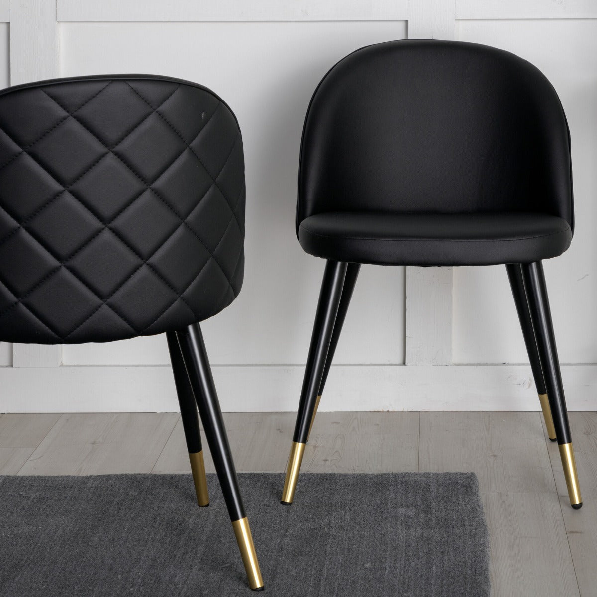 Fjôrd - Eetkamerstoel Goud|Zwart - PU Leer - Stiches - Set van 2