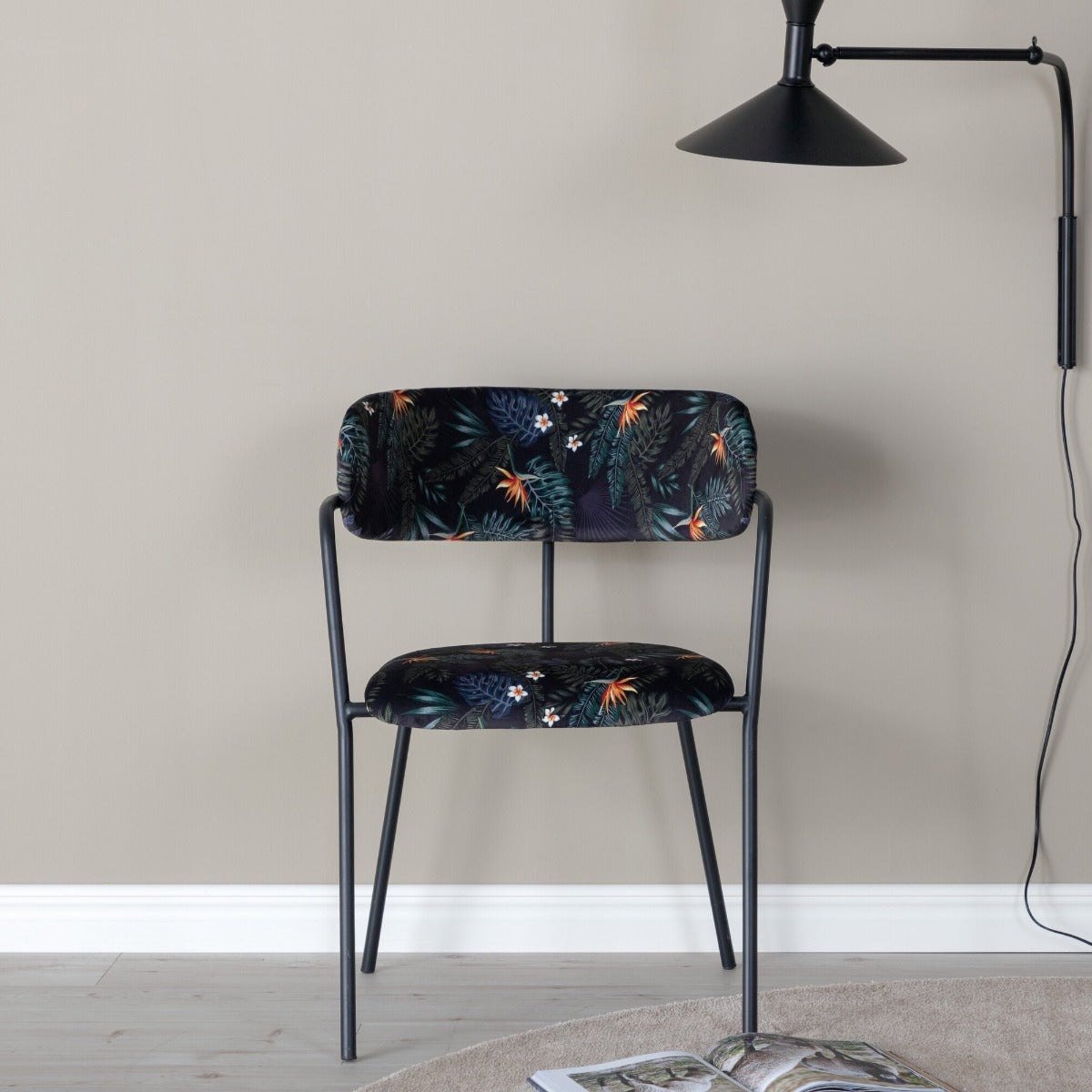 Fjôrd Eetkamerstoel Arrow Zwart Bloemenprint Velvet