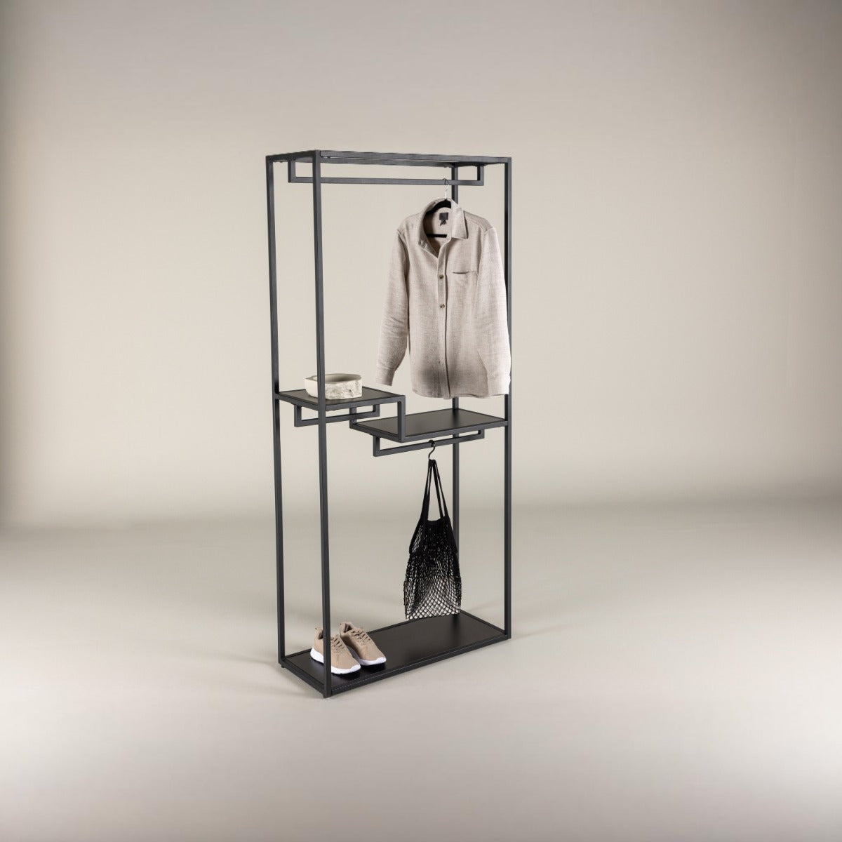 - Robuuste stalen kapstok met een strak en minimalistisch design.