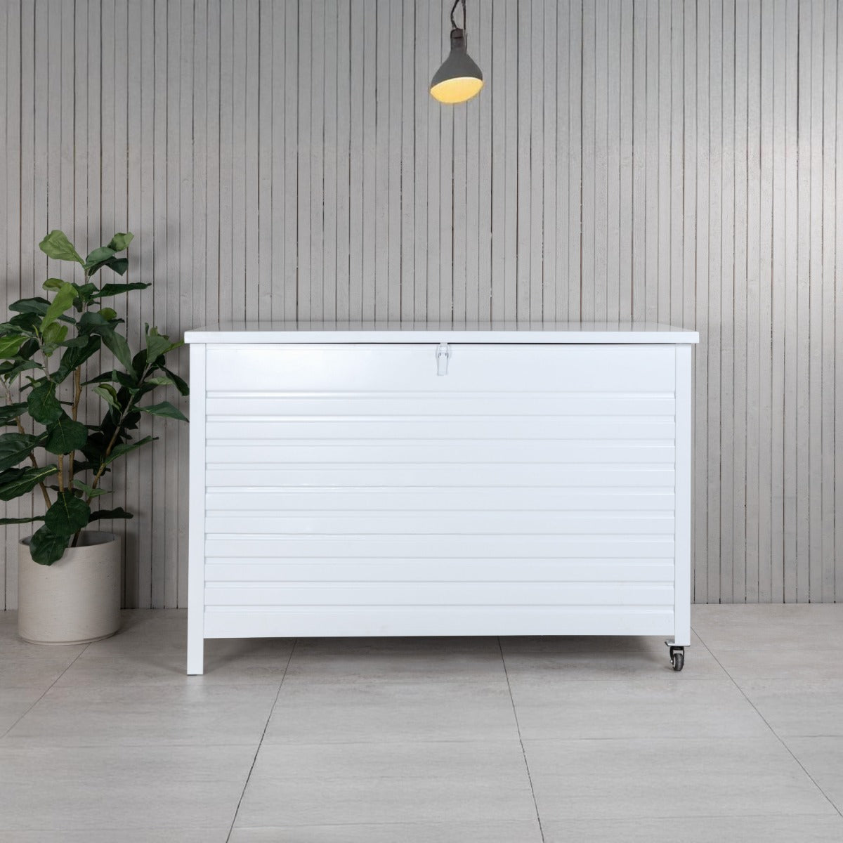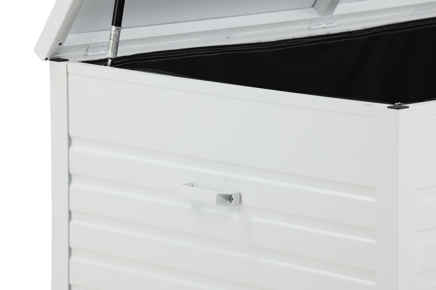 De Fjôrd Kussenbox Tiana in het wit is een stijlvolle en praktische toevoeging aan je buitenruimte. Deze design kussenbox is vervaardigd uit hoogwaardig aluminium en polyester, wat zorgt voor een duurzame en weerbestendige opbergoplossing. De strakke witte kleur geeft een moderne uitstraling en past perfect in elke tuin of op elk terras. De kussenbox biedt voldoende ruimte om je kussens en andere tuinaccessoires veilig en droog op te bergen, terwijl het stevige materiaal ervoor zorgt dat je jarenlang plezier hebt van dit product.