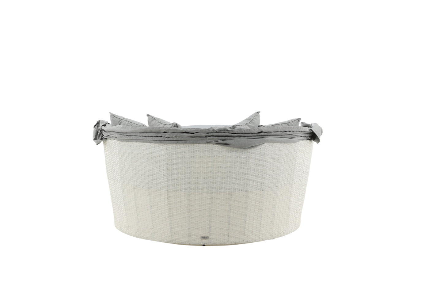 Materiaal: Het ligbed is vervaardigd uit rotan, wat het een natuurlijke en duurzame uitstraling geeft. De zitting is bekleed met een hoogwaardige stof/textiel, wat zorgt voor extra comfort en een luxe uitstraling. Deze combinatie van materialen maakt het ligbed zowel stijlvol als functioneel.
