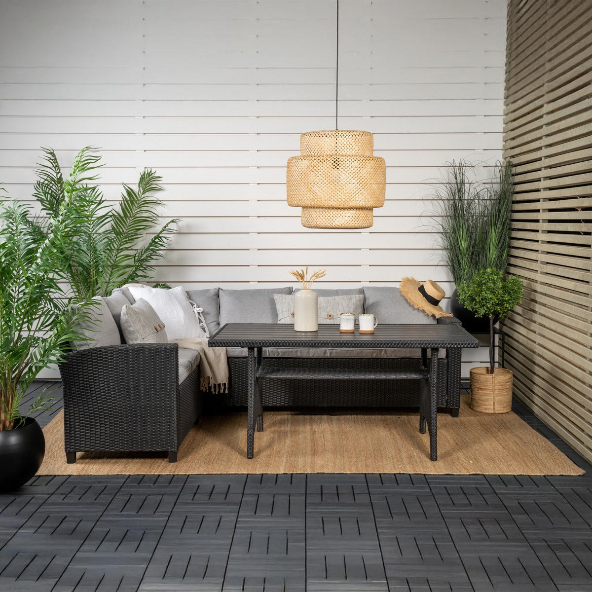 Ontspan in stijl met de Fjôrd Loungeset Brentwood in een elegante zwart/grijze kleur. Deze loungeset straalt een Bohemian sfeer uit en is vervaardigd uit een combinatie van rotan, riet en staal, wat zorgt voor een unieke uitstraling en duurzaamheid. De set is perfect voor zowel binnen- als buitengebruik en biedt een comfortabele plek om te relaxen. De hoogwaardige materialen zorgen ervoor dat je jarenlang plezier zult hebben van deze eyecatcher in je tuin of op je terras.