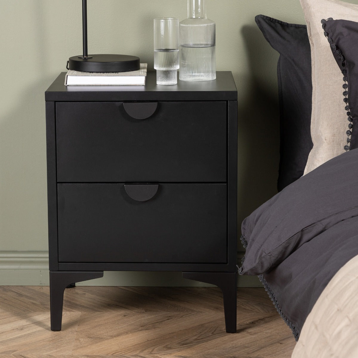 Het Fjôrd Nachtkastje Piring in zwart is een prachtige toevoeging aan je slaapkamer. Dit nachtkastje straalt een industriële stijl uit, perfect voor een moderne inrichting. Gemaakt van hoogwaardig staal, biedt het een robuuste en duurzame kwaliteit die jarenlang meegaat. De zwarte kleur voegt een vleugje elegantie toe aan je interieur. Met zijn praktische ontwerp en twee ruime lades is het nachtkastje ideaal voor het opbergen van je persoonlijke spullen, terwijl het ook als stijlvolle eyecatcher fungeert naast je bed.