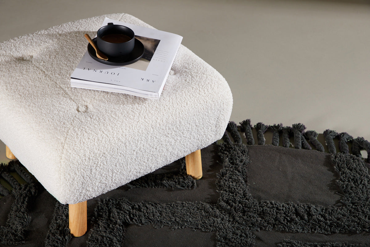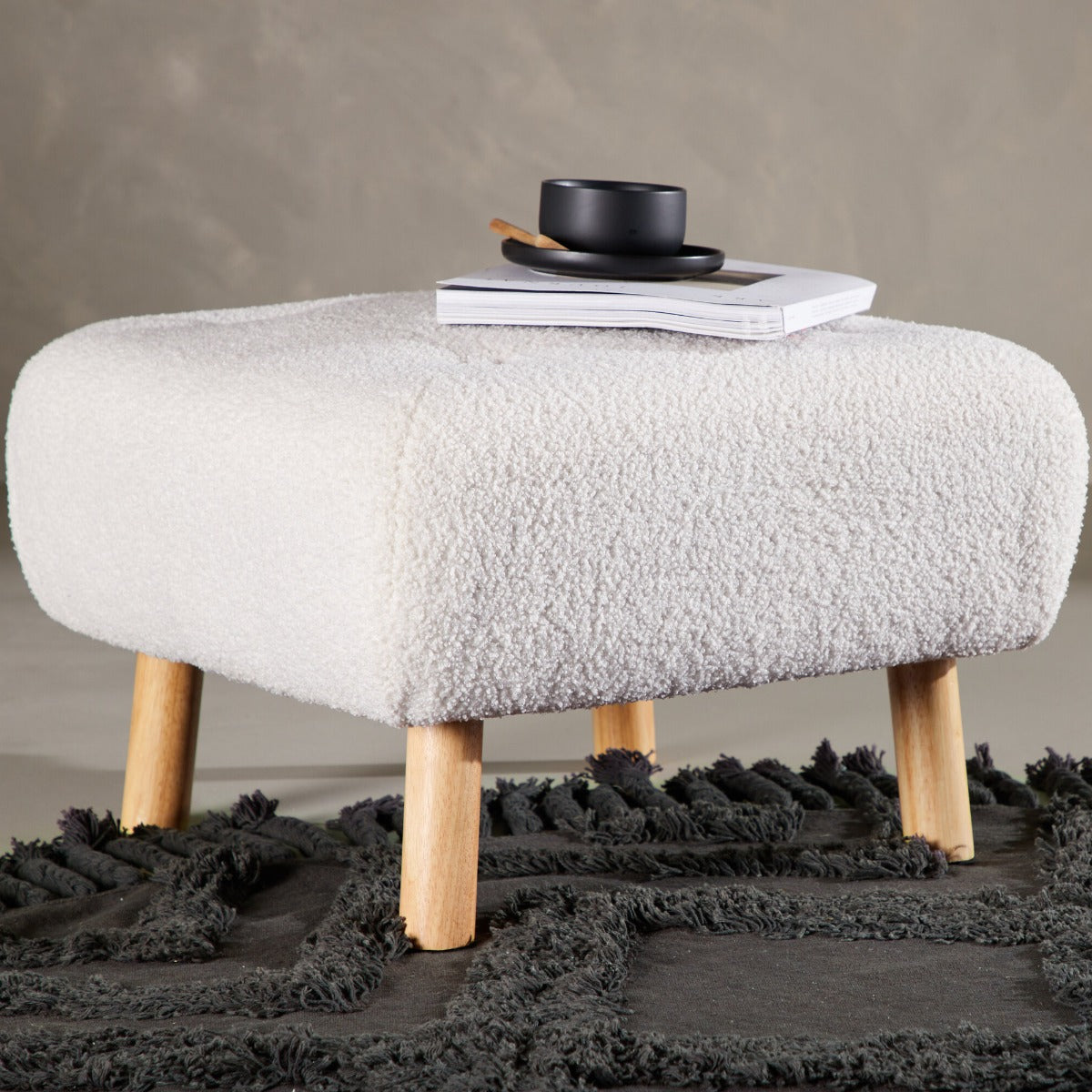 Fjôrd Poef Salina Whitewash Wit Boucle 28x60x60cm
