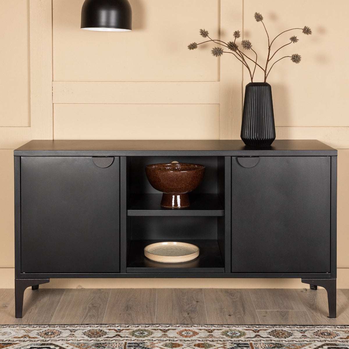 Met zijn compacte afmetingen past het Fjôrd Tv-meubel Piring perfect in elke woonkamer, zonder in te boeten op opbergruimte. Bestel jouw Fjôrd Tv-meubel Piring Zwart vandaag nog en profiteer van gratis verzending bij bestellingen boven de €100. Voeg stijl en functionaliteit toe aan je interieur met dit prachtige meubelstuk.