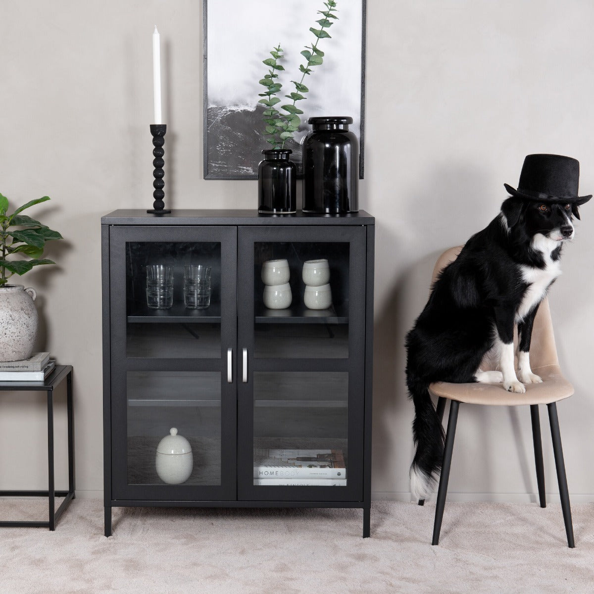 Fjôrd Vitrinekast Acero Zwart 97x80cm
