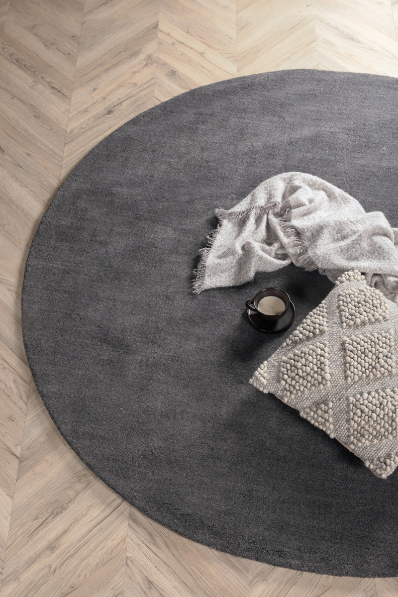 Fjôrd Vloerkleed Ulla Wol Polyester Donkergrijs Ø200cm