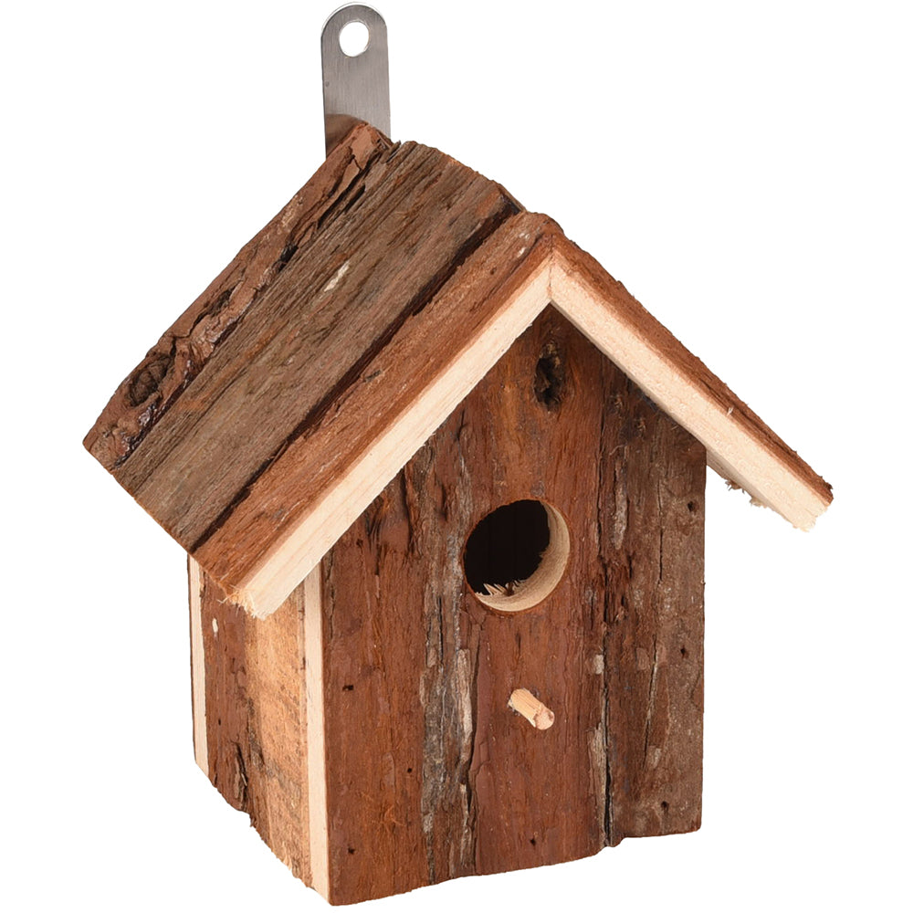 De Nestkast Gitano Natuur is door zijn maatvoering een zeer geschikt vogelhuisje voor de winterkoning. De winterkoning maakt namelijk graag zijn nestje in ondiepe vogelhuisjes, daarom heeft de winterkoning een klein onderkomen nodig. Het nestkastje heeft een natuurlijke uitstraling en doet het daarom ook erg goed als decoratie in een landelijke tuin. Het nestkastje is eenvoudig op te hangen door middel van een ophangoog aan de achterzijde van deze nestkast. De afmetingen zijn circa 15 x 11 x 16 centimeter (lxbxh).