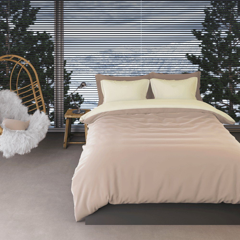 Flanellen Dekbedovertrek Comtesse Zand|Ivoor-140 x 200|220 cm