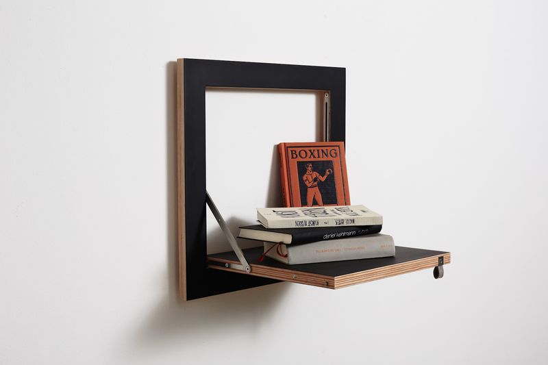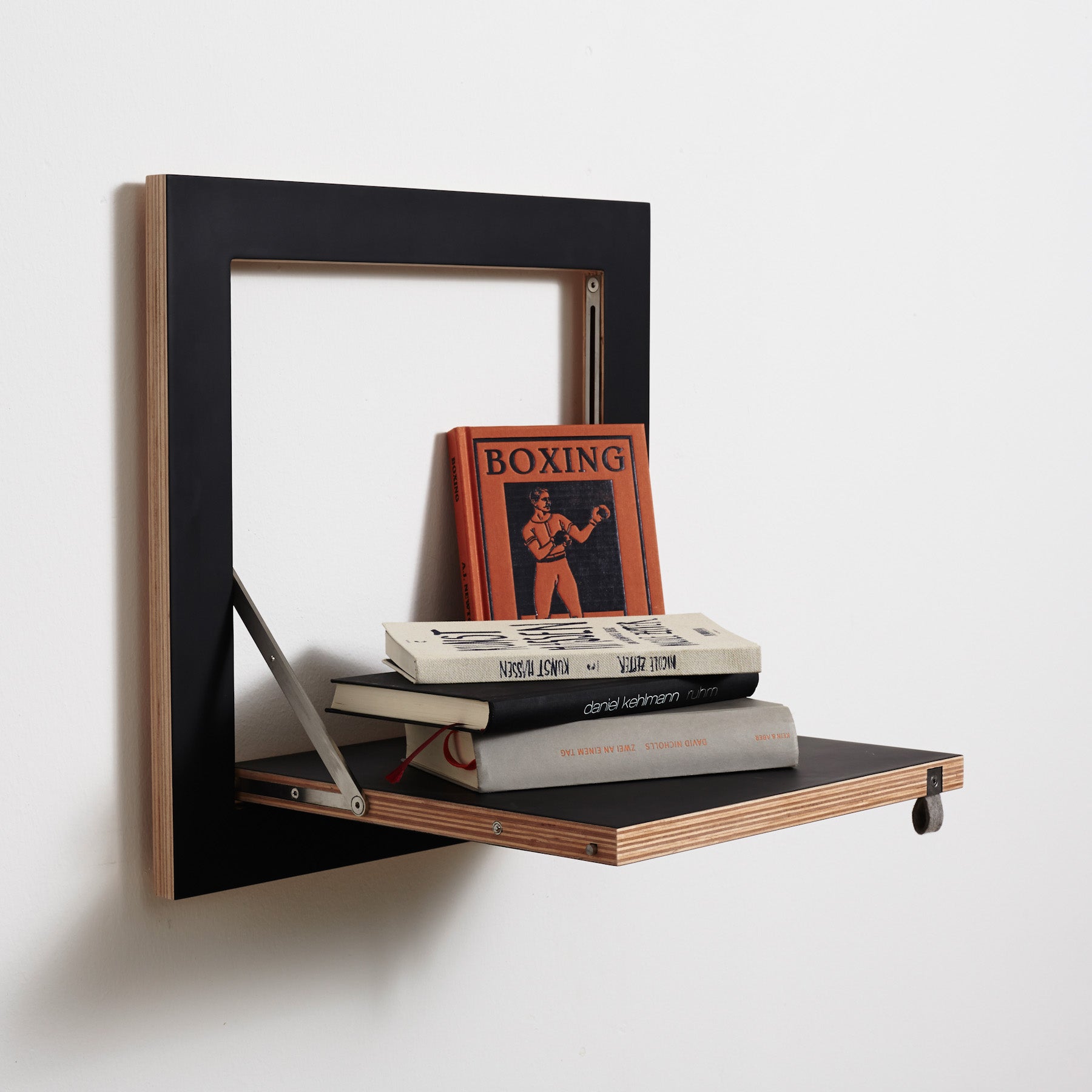 Afmetingen: Gesloten: 40 x 40 x 2 cm + 1 cm wandbevestiging Open oppervlak: 30 x 30 cm Materialen: Berkenmultiplex met door-en-door gekleurd HPL, roestvrij staal Draagvermogen: 45 kg