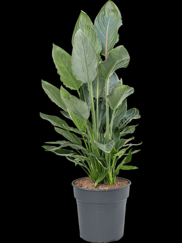 De Strelitzia Reginae, ook wel paradijsvogelplant genoemd, is afkomstig uit Zuid-Afrika en heeft mooie grote vederachtige bladeren die je huis omtoveren in een ware jungle. In de vrije natuur wordt de plant tot wel 3 meter hoog. In de zomer is de Strelitzia Reginae zeer geschikt om op het terras te plaatsen, waar ze voor een geweldige ambiance zal zorgen. De Reginae bloeit in het najaar met prachtige oranjeblauwe bloemen. De plant wordt geleverd met bloemknoppen.