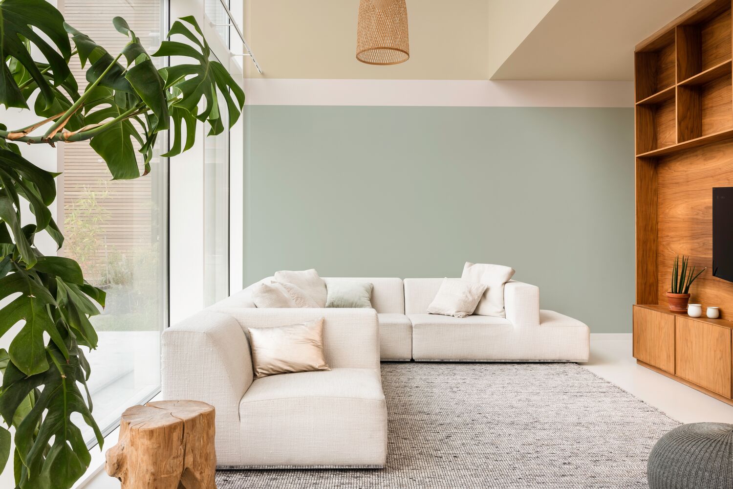 Muurverf aanbrengen: Als de voorstrijk goed gedroogd is, kun je beginnen met de eerste laag Flexa Creations Muurverf. Breng twee lagen aan voor een mooi dekkend en egaal resultaat. Begin ook hier bij de randen met een kunststofkwast en verf daarna de grote vlakken met een lamsvachtroller. Breng 2 tot 3 banen aan in verticale richting, verdeel deze vervolgens in horizontale richting en rol tot slot in één richting verticaal na. De droogtijd tussen de lagen is ongeveer 6 uur bij 20 graden. Reinig na afloop je gereedschap met water. Breng eventuele verfresten bij een verzamelpunt voor klein chemisch afval.