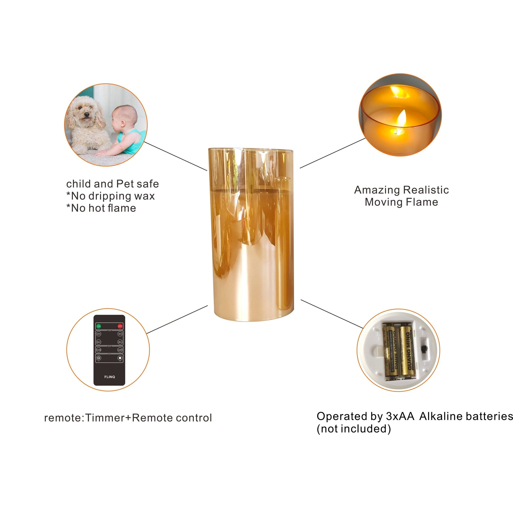 De gezellige kaarsen worden standaard geleverd met een afstandsbediening. Die is voorzien van knopjes voor alle functies. Zo kun je de kaarsen bijvoorbeeld dimmen, waarmee je met een druk op de knop de sfeer in huis bepaalt. Of je stelt een timer in, waardoor je precies weet hoelang de kaarsen zullen ‘branden’.