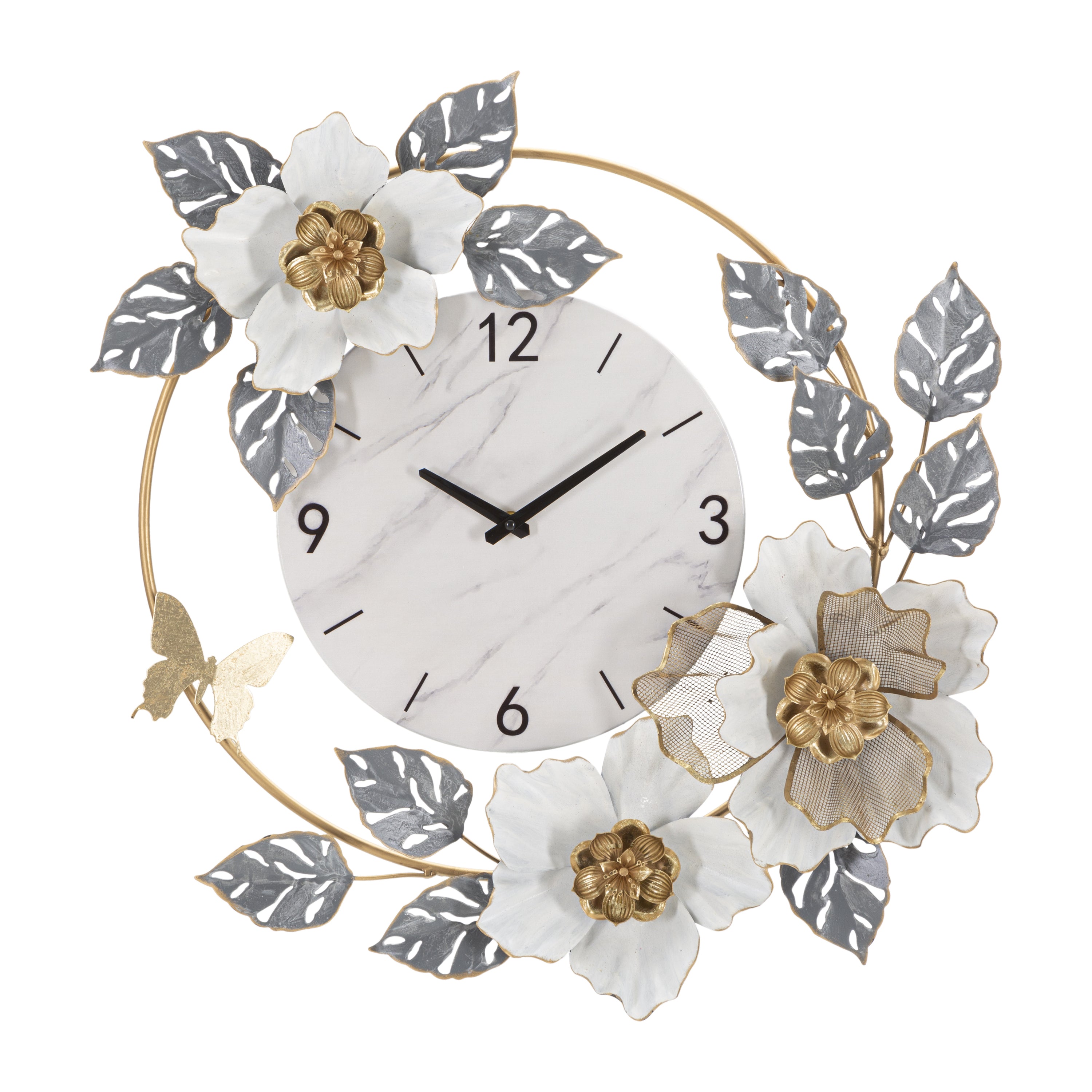 Flowers - Wandklok met bloemen in veelkleurig metaal