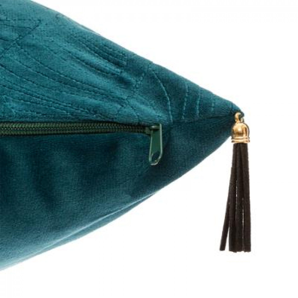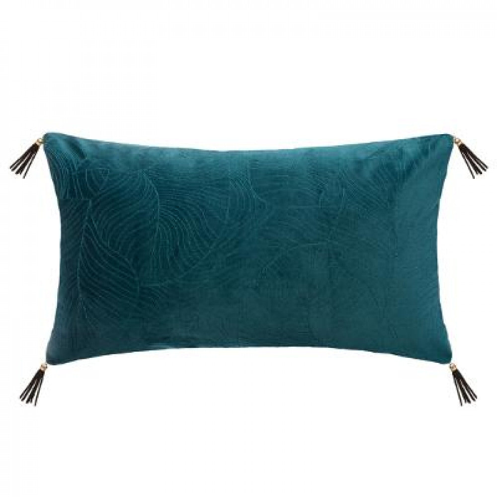 Fluwelen Kussen Leafs – Kwastjes – Petrol Blauw – 30 x 50 cm (incl.