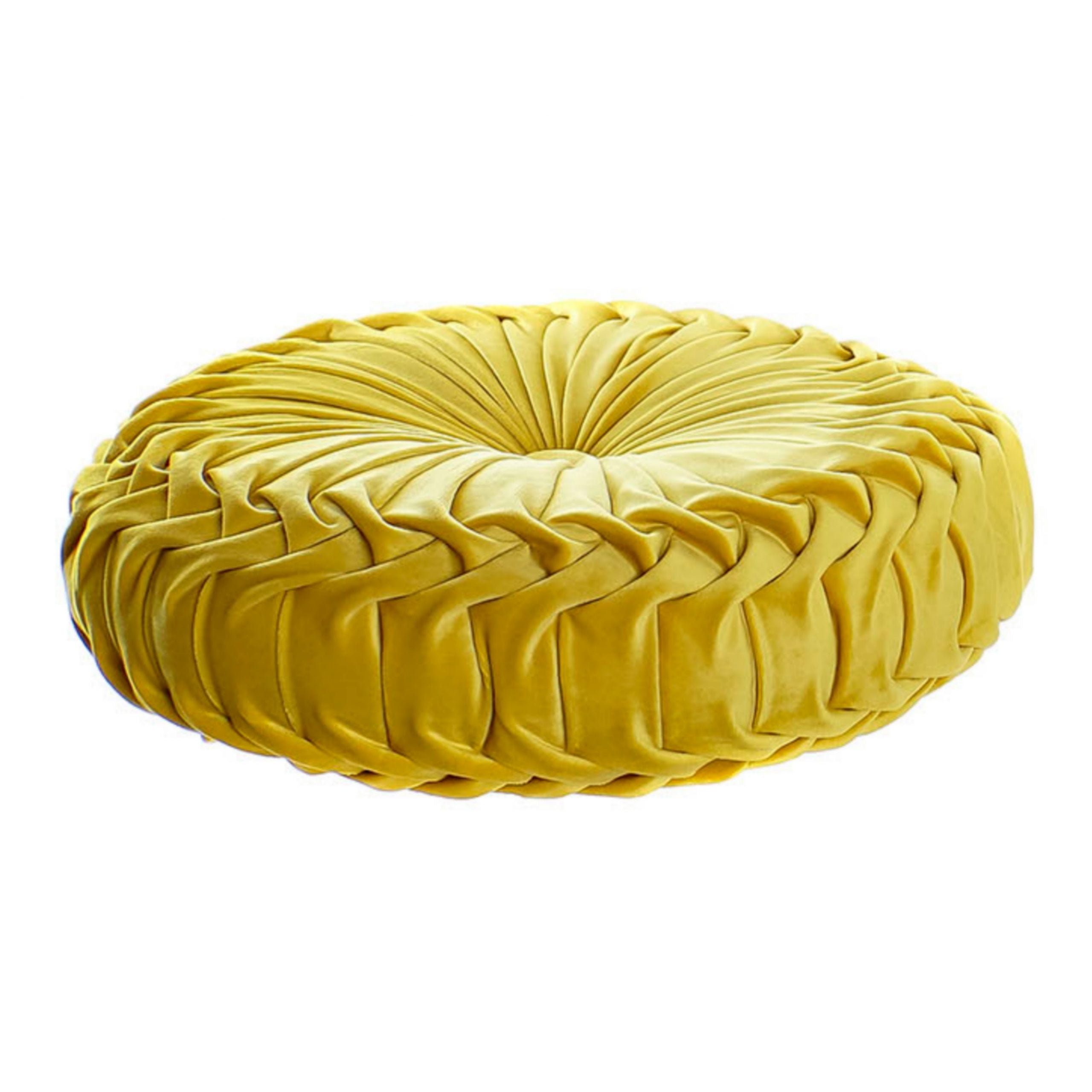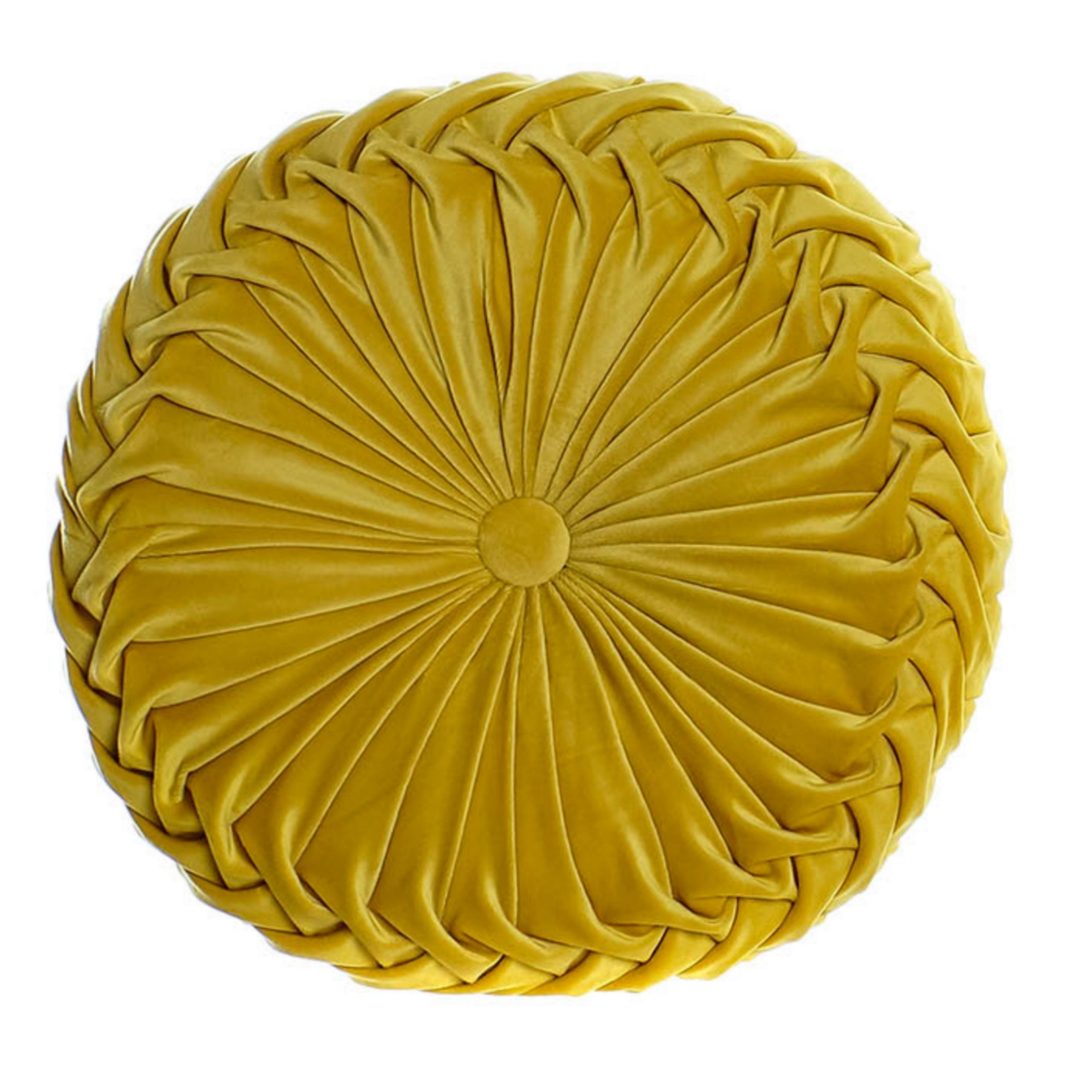 Fluwelen Kussen Ottoman – Rond – Oker Geel -Velvet - Ø 40 cm (incl.