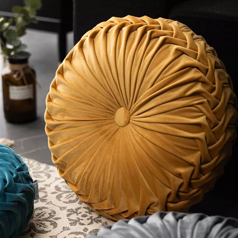 Fluwelen Kussen Ottoman – Rond – Oker - Ø 40 cm (incl. vulling)