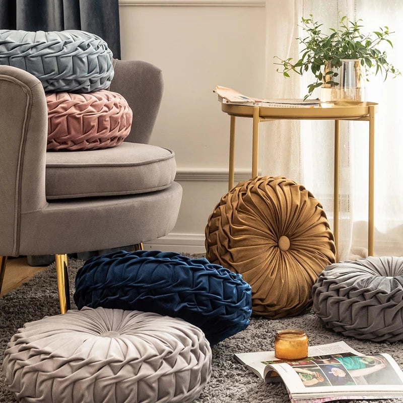 Vrolijk je hoekbank of fauteuil op met deze velvet ronde kussen van het merk CASA DI ELTURO. De velvet stof is niet meer weg te denken. Het geeft een luxe uitstraling op de speciale manier hoe deze stof gestikt is en is makkelijk met andere kleuren te combineren. Deze Velvet Kussen is hand gemaakt.