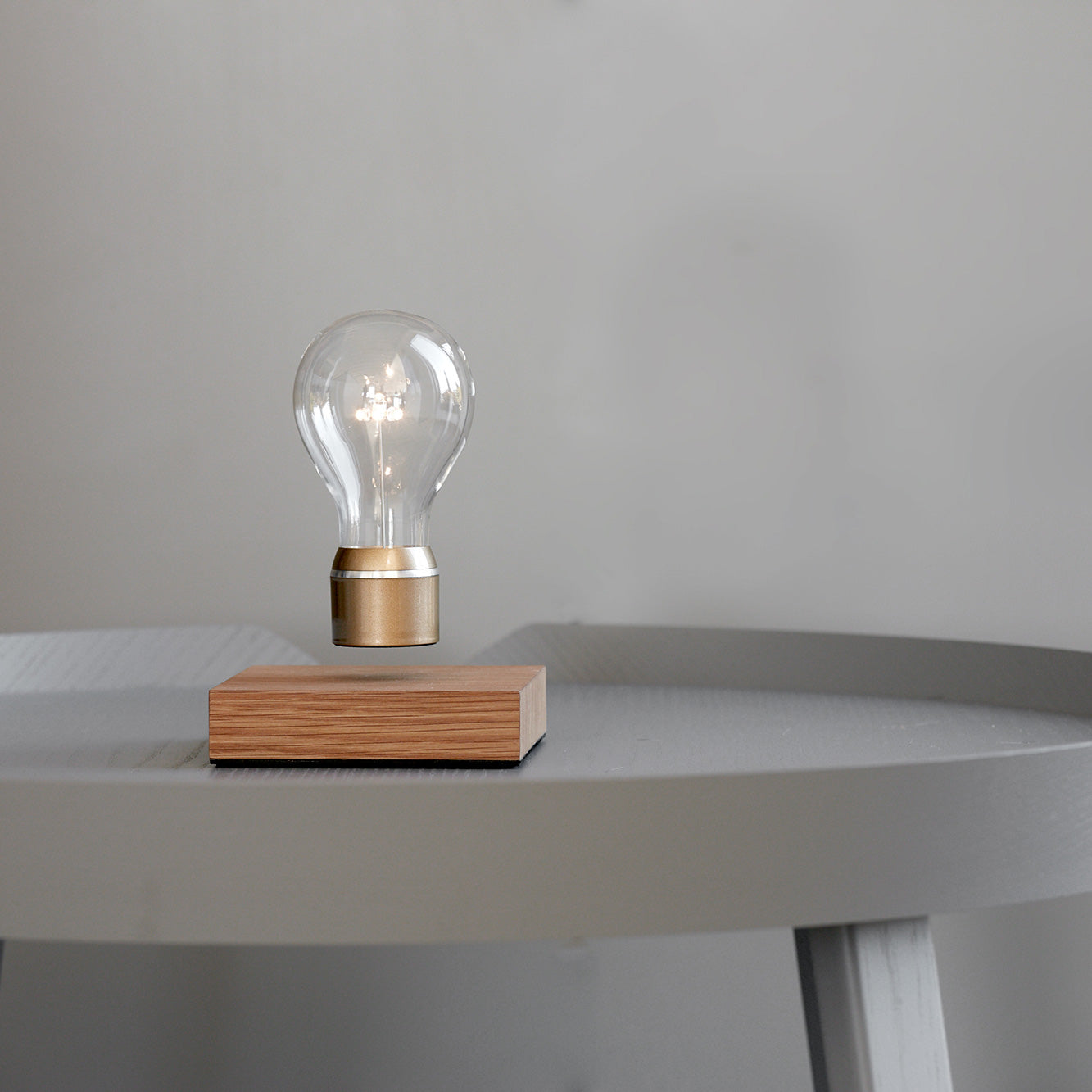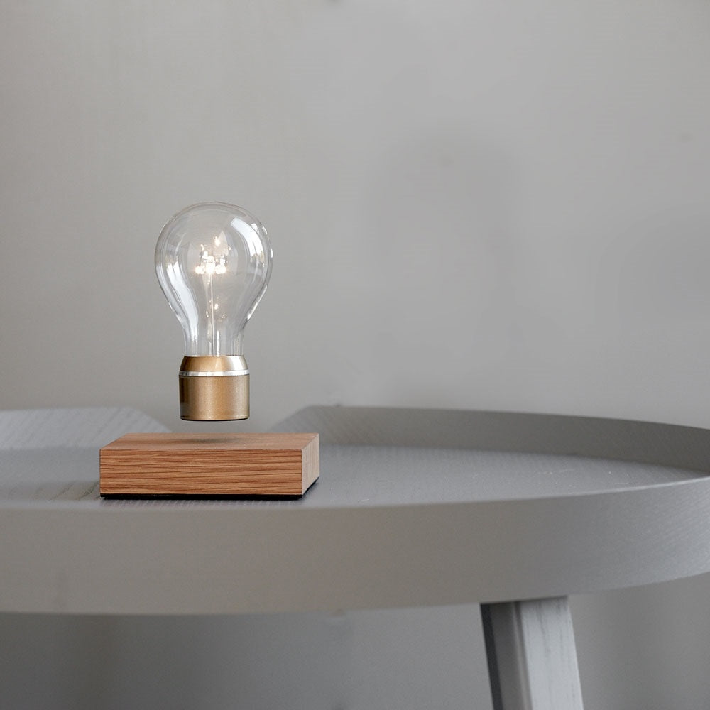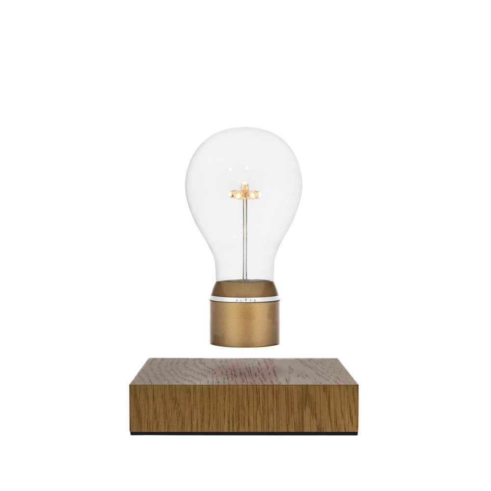 Wát een lamp De FLYTE is zo bijzonder dat je er wel uren naar kunt staren. Want hoe kan het nu toch dat het peertje boven de voet van de lamp zweeft? De houten voet zorgt voor een strakke, stijlvolle basis en het zweefelement maakt hem natuurlijk écht uniek. Extra mooi effect: door de magnetische spanning draait de lamp lichtjes heen en weer.