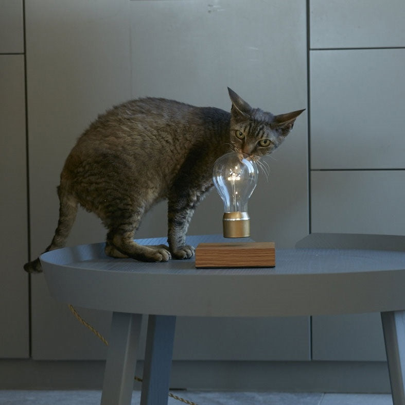 De lichtbron krijgt ook zijn stroom op deze manier. Zie het als het principe van de moderne inductiekookplaat, waar energie ook verplaatst wordt zonder stroomkabels. Dit principe maakt gebruik van elektromagnetische golven van het ene onderdeel (in dit geval de houten voet) naar het andere onderdeel (de lichtbron) te sturen. Voor mens en dier natuurlijk helemaal veilig en vooral ontzettend interessant. Tip: laat je vrienden maar eens raden hoe het werkt!