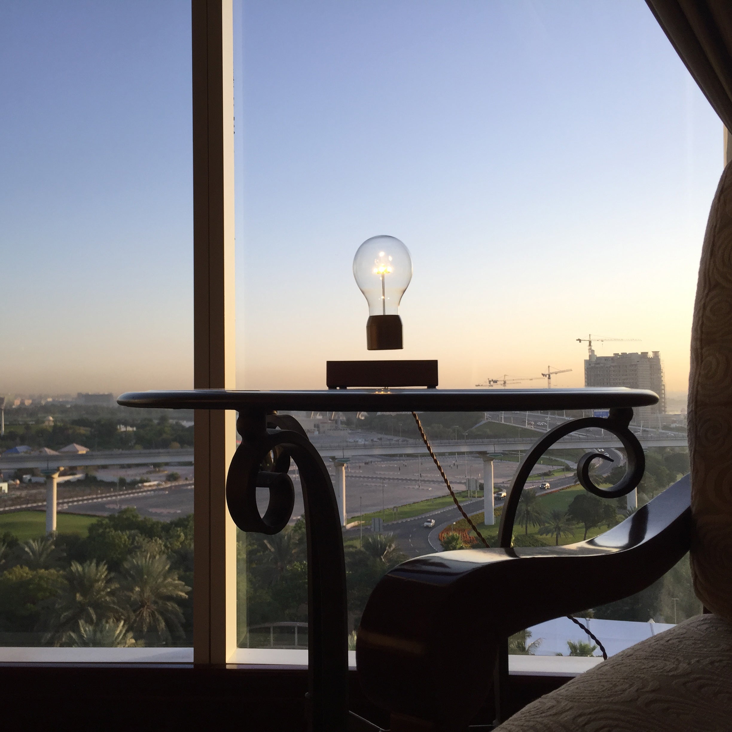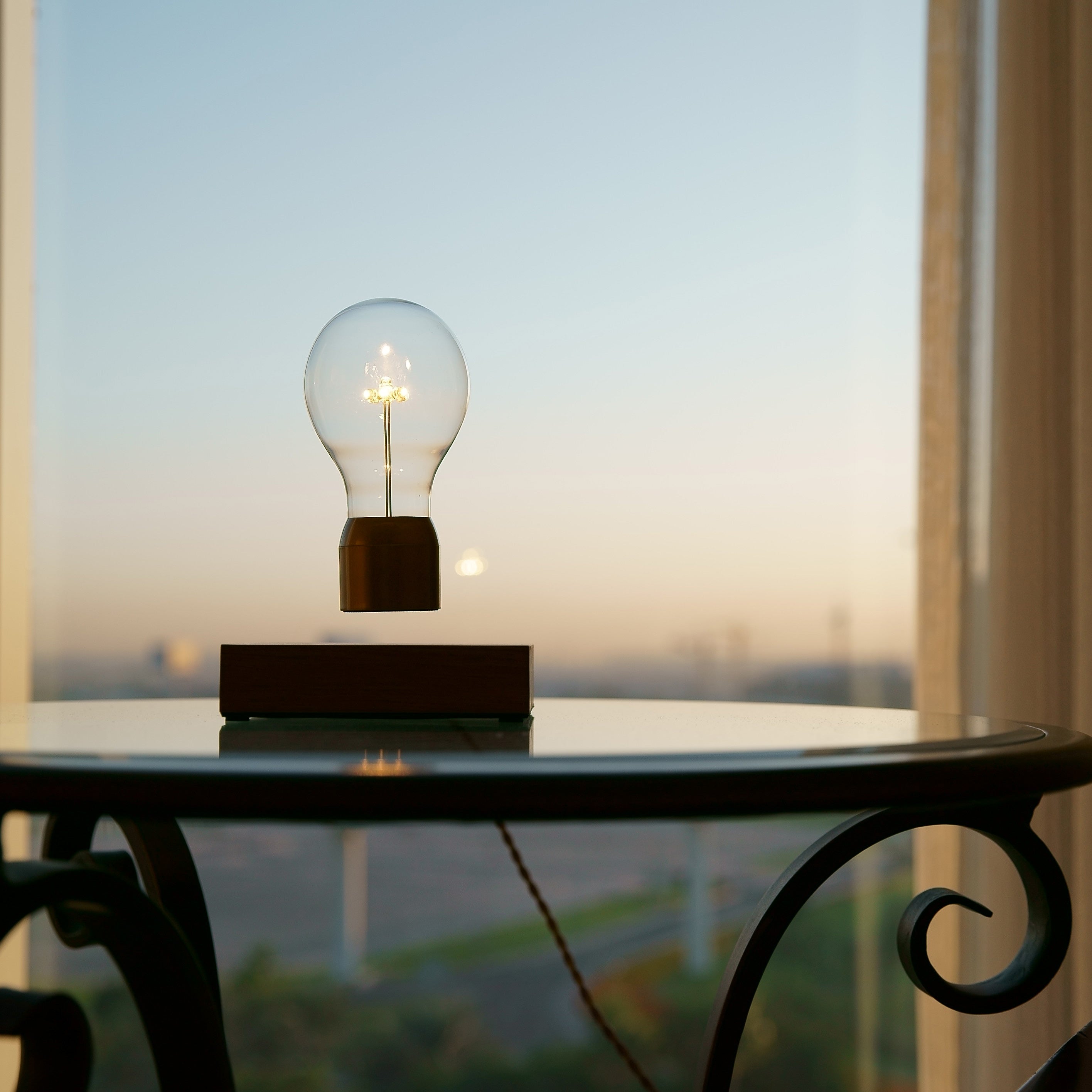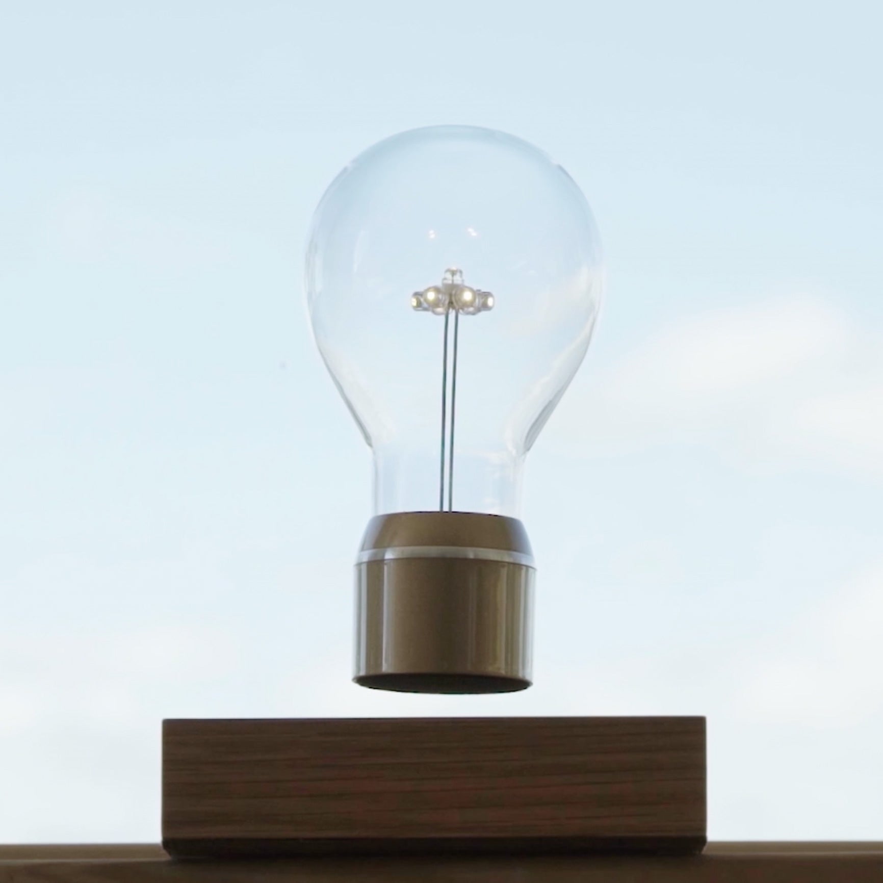- Middels een magnetisch veld zweeft de lichtbron boven de voet