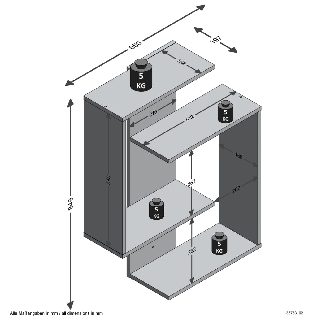- Afmetingen: 65 x 19,7 x 84,9 cm (B x D x H)