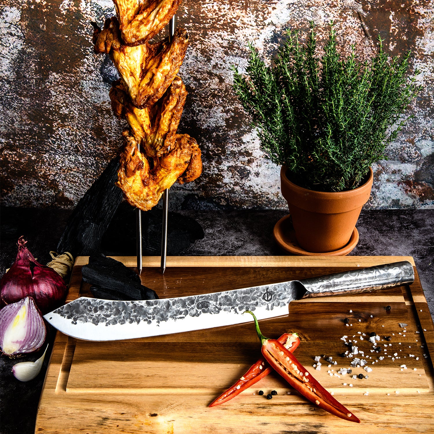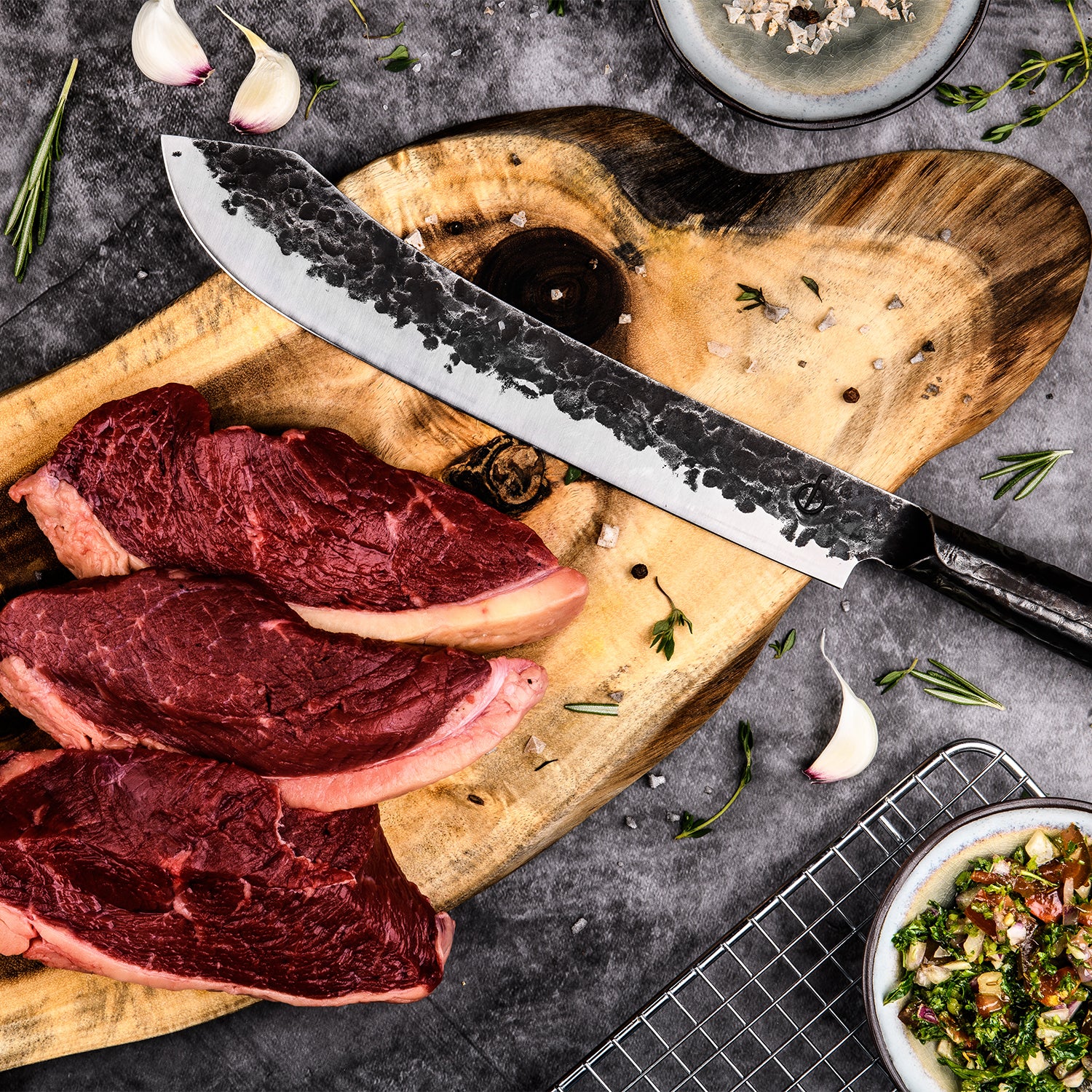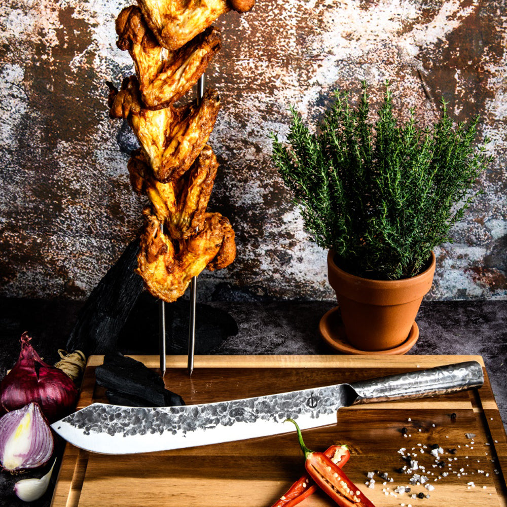 Mooie messen waar je hart sneller van gaat kloppen, waar je het liefst de hele dag mee in de keuken wil doorbrengen. In dat rijtje horen de Forged messen thuis. Deze robuuste, opvallende messen zijn volledig met de hand gesmeden!