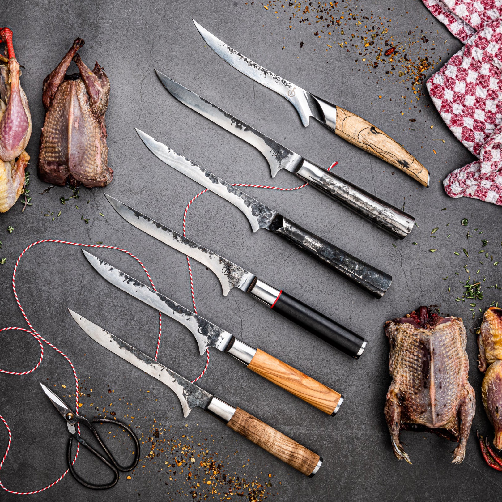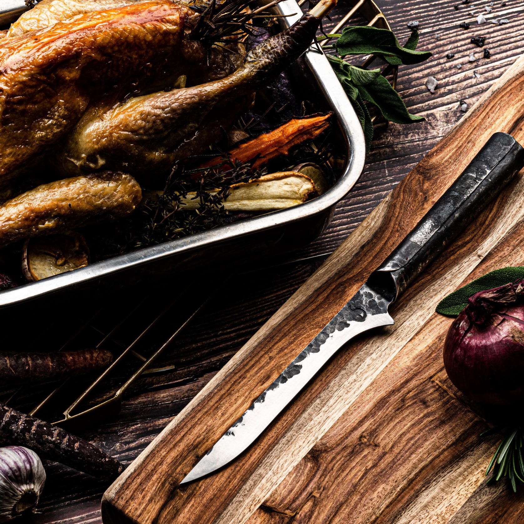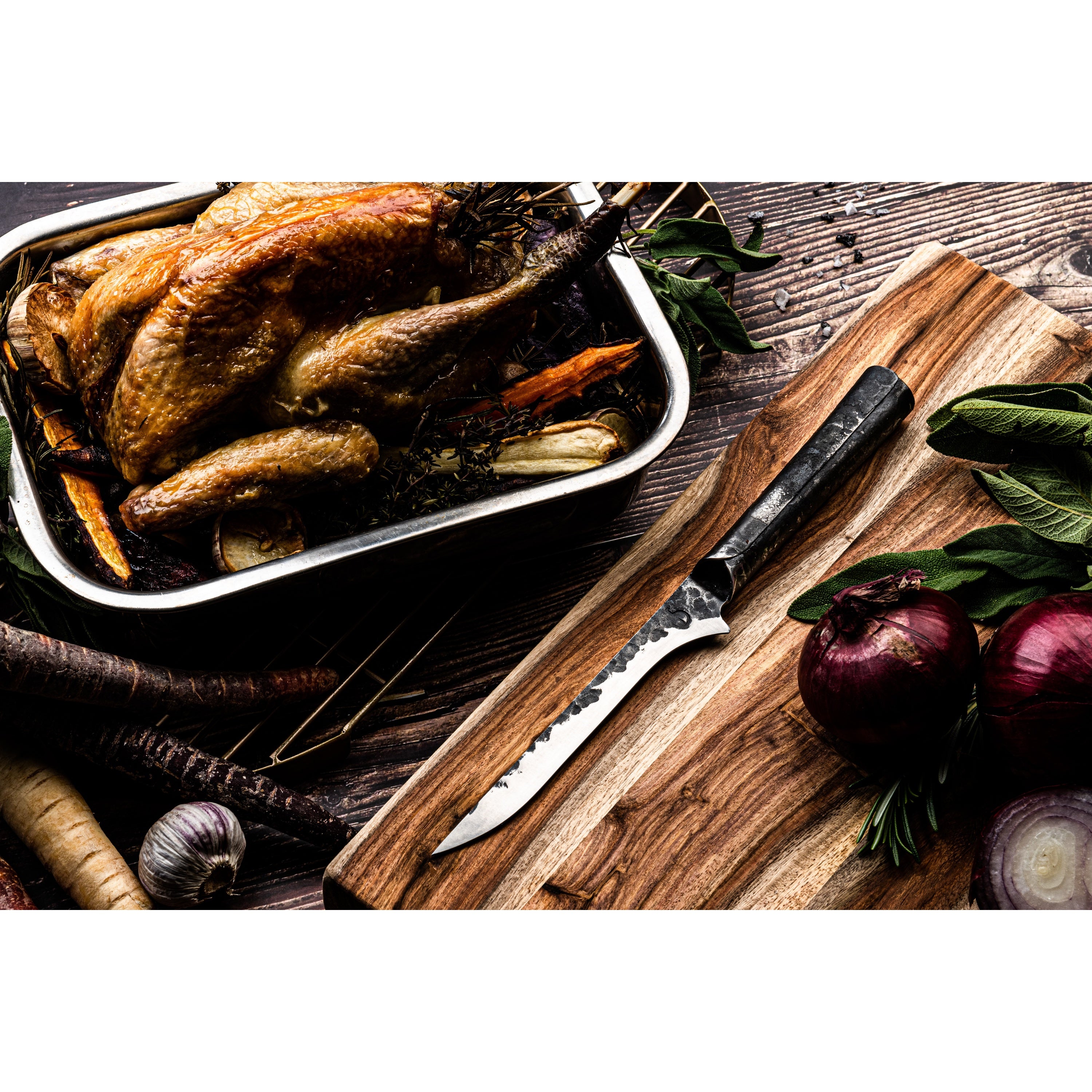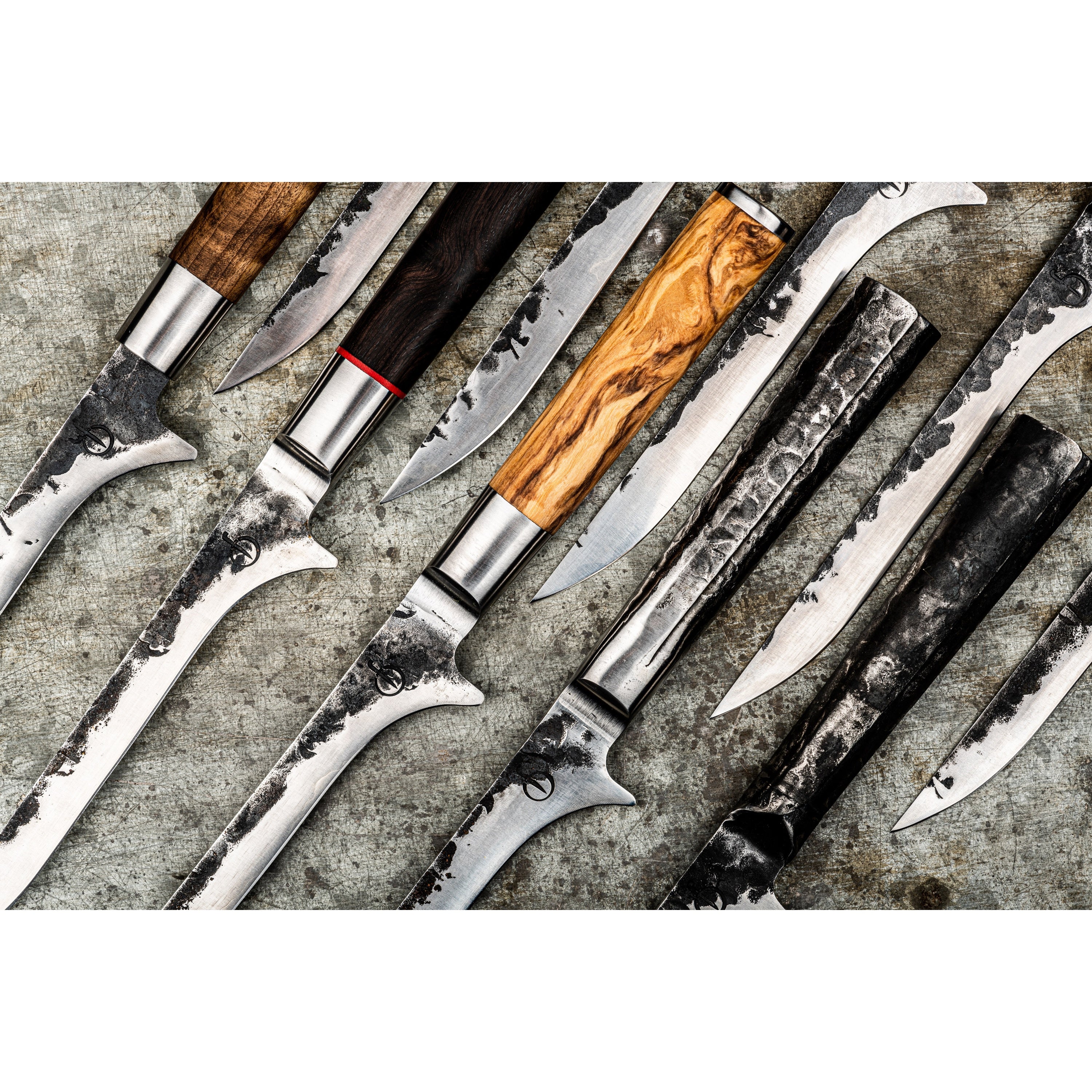 Mooie messen waar je hart sneller van gaat kloppen, waar je het liefst de hele dag mee in de keuken wil doorbrengen. In dat rijtje horen de Forged messen thuis. Deze robuuste, opvallende messen zijn volledig met de hand gesmeden!