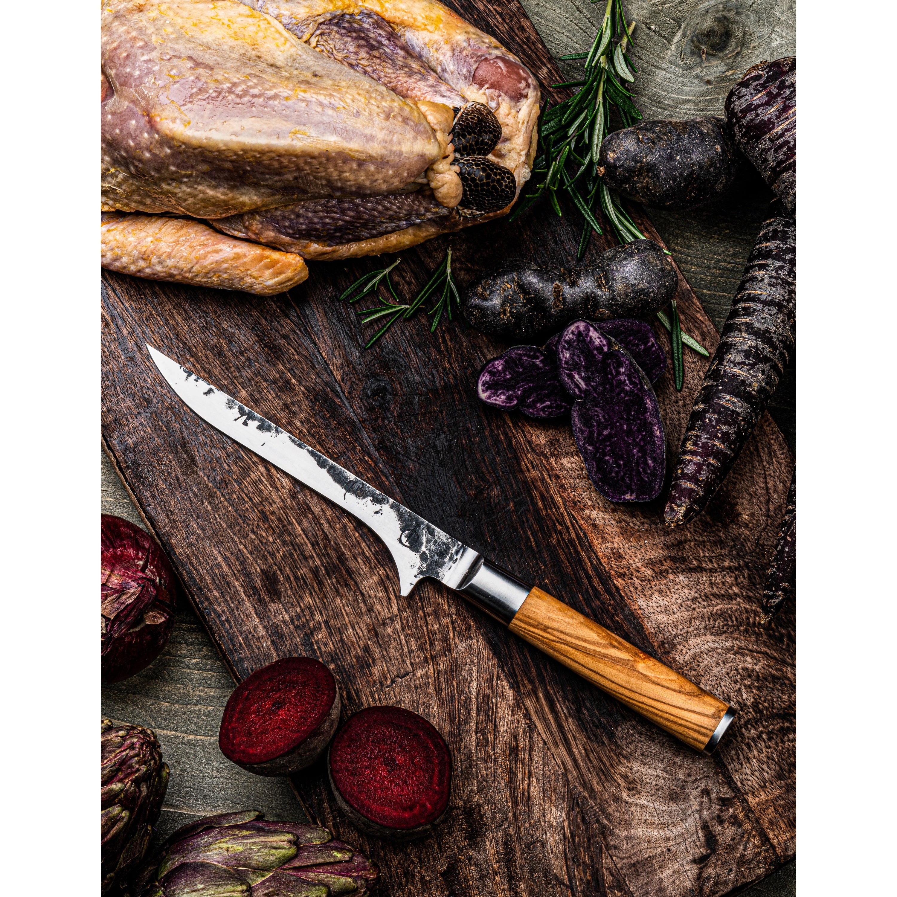 Mooie messen waar je hart sneller van gaat kloppen, waar je het liefst de hele dag mee in de keuken wil doorbrengen. In dat rijtje horen de Forged messen thuis. Deze robuuste, opvallende messen zijn volledig met de hand gesmeden!