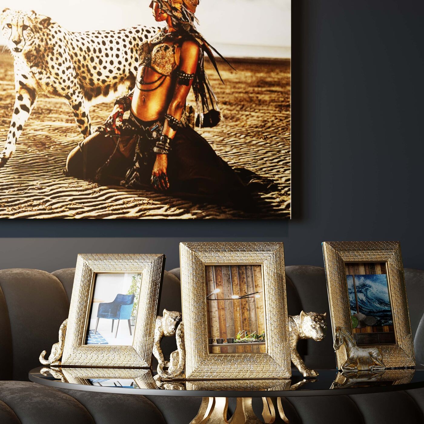 - Gemaakt van hoogwaardig Polyresin/Glas, biedt dit meubel duurzaamheid en een luxe uitstraling.