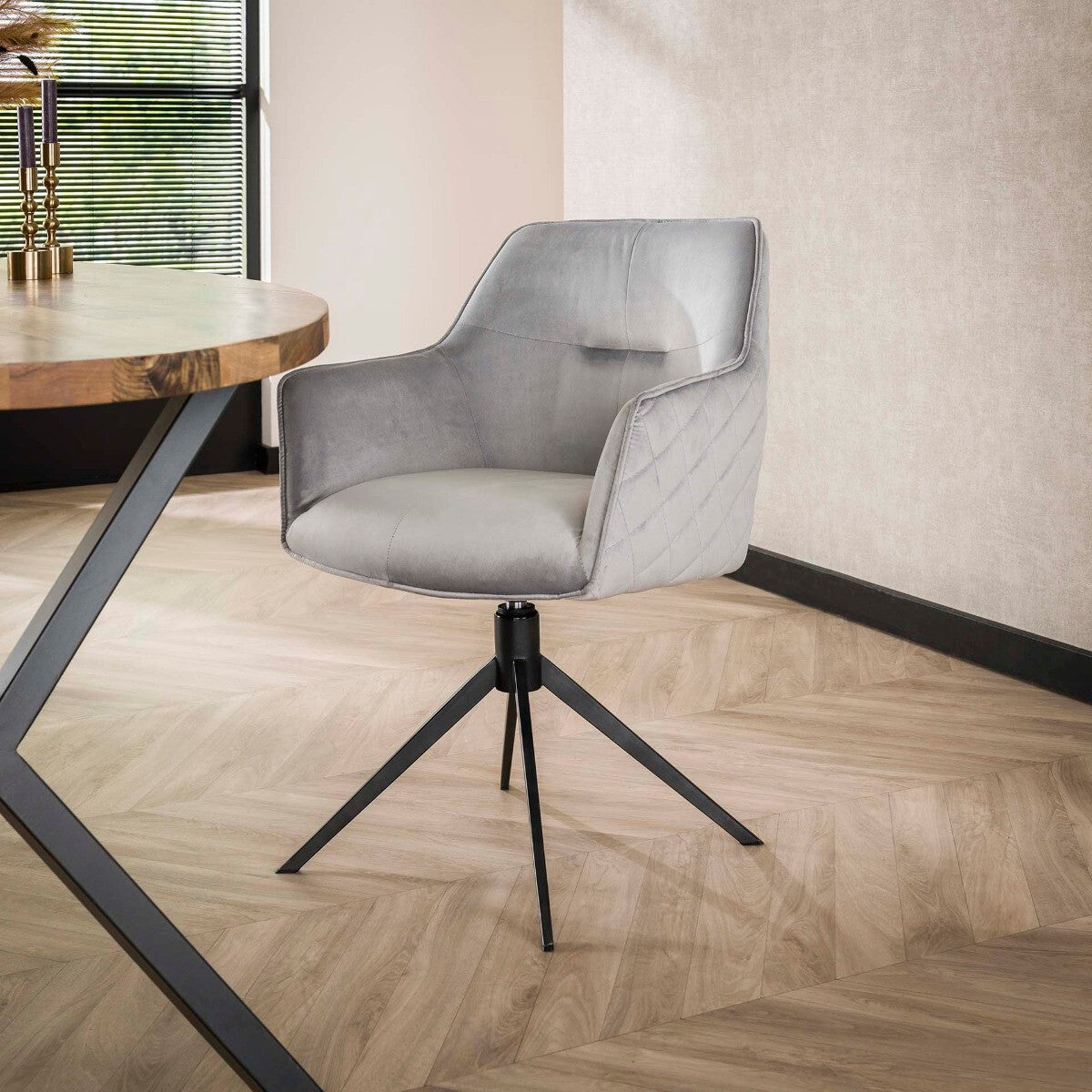 Fraaai - Diego eetkamerstoel velvet draaibaar zilver
