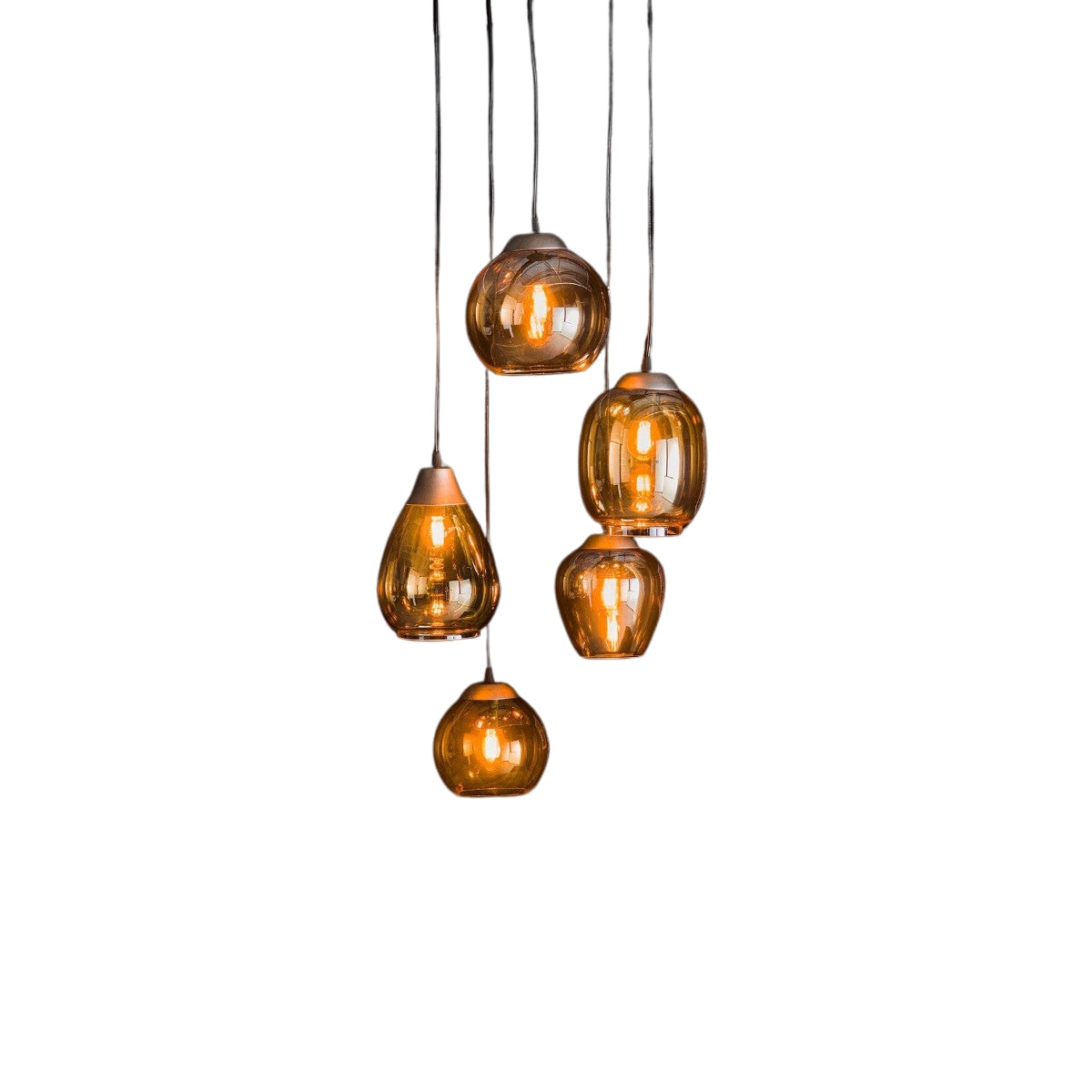 Fraaai - Elouise hanglamp 5L getrapt mix amber glas