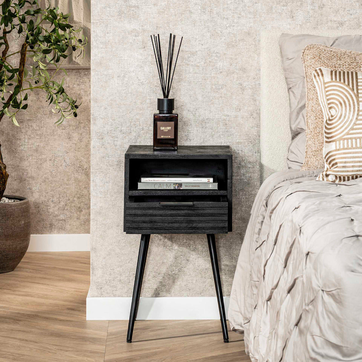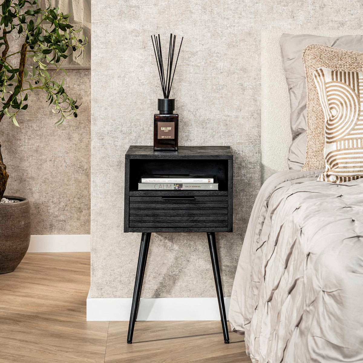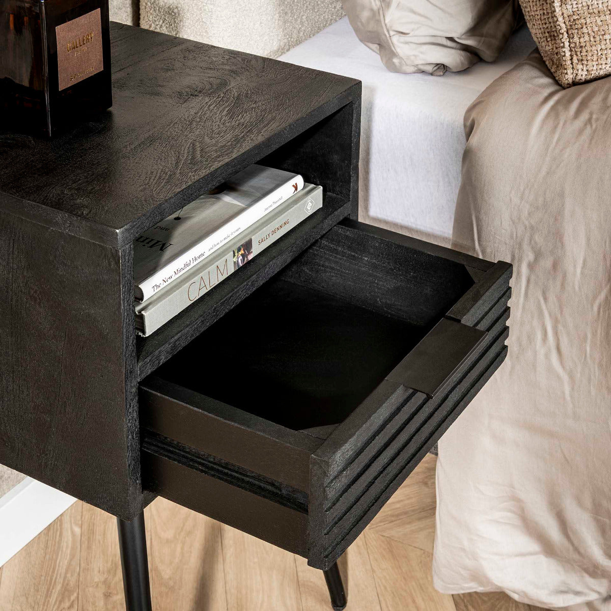 Mariah nachtkastje 1L mangohout zwart van het woonmerk Fraaai