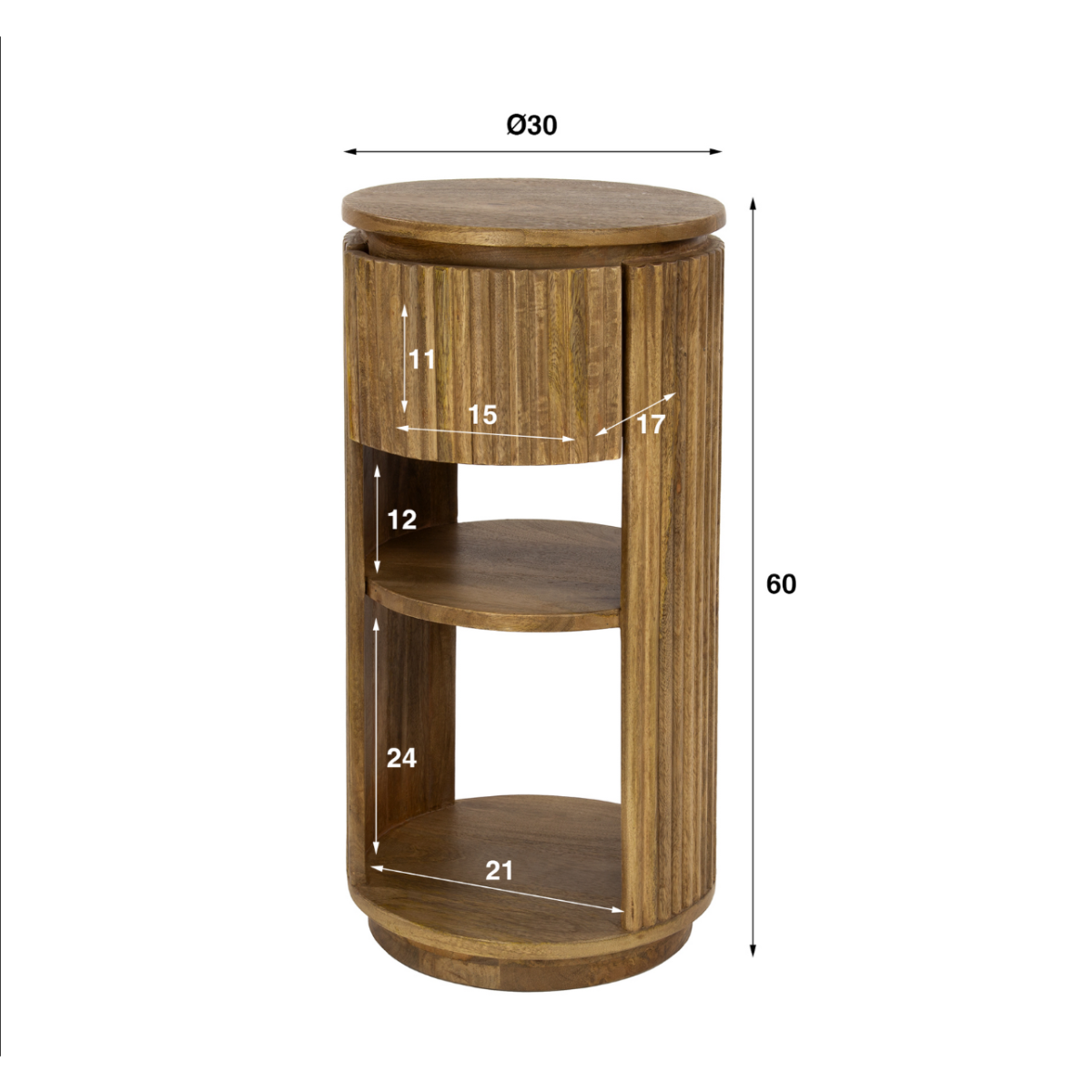 Fraaai Sedona nachtkastje rond XS - mangohout
