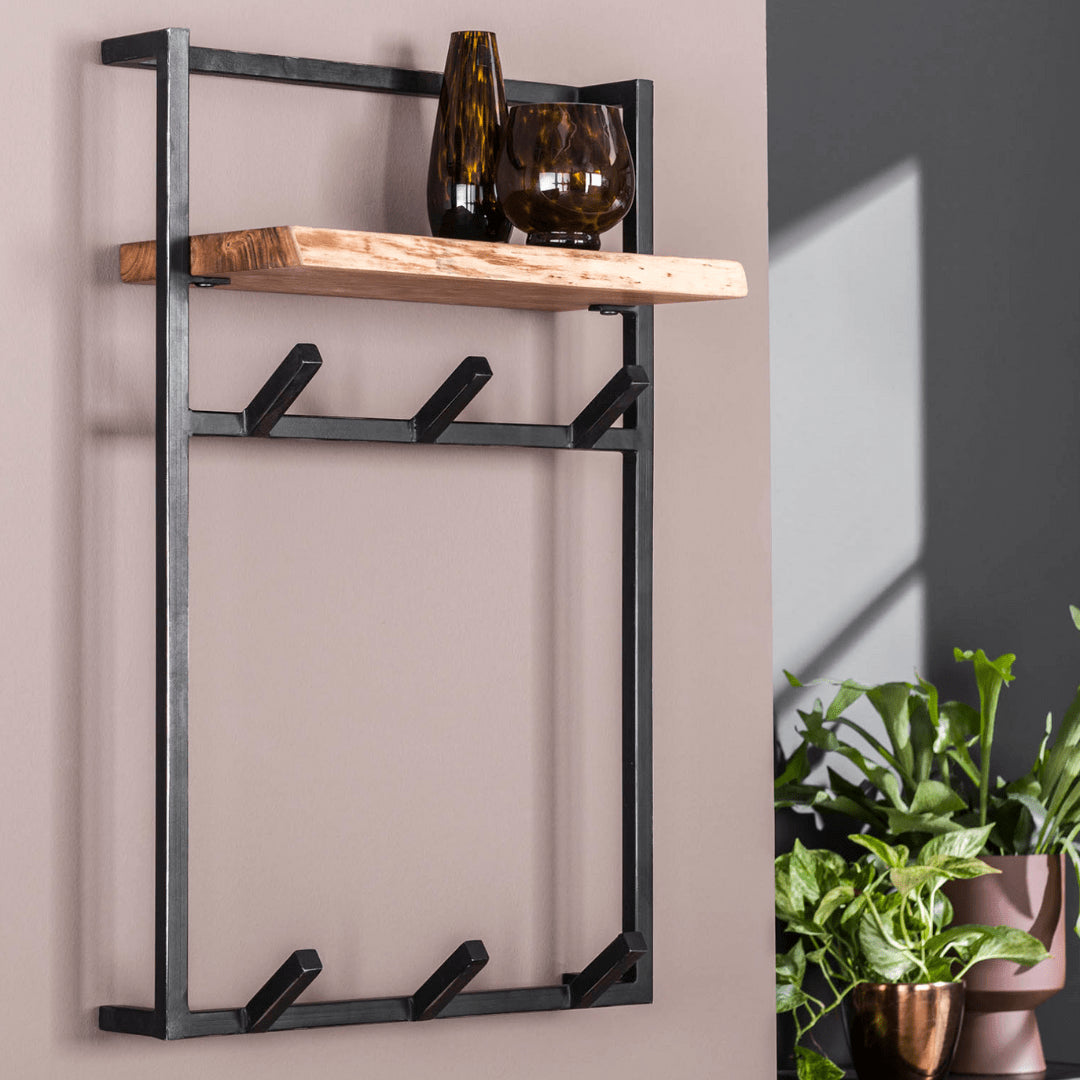 Fraaai - Woody kapstok metaal hoog met plank en 6 haken