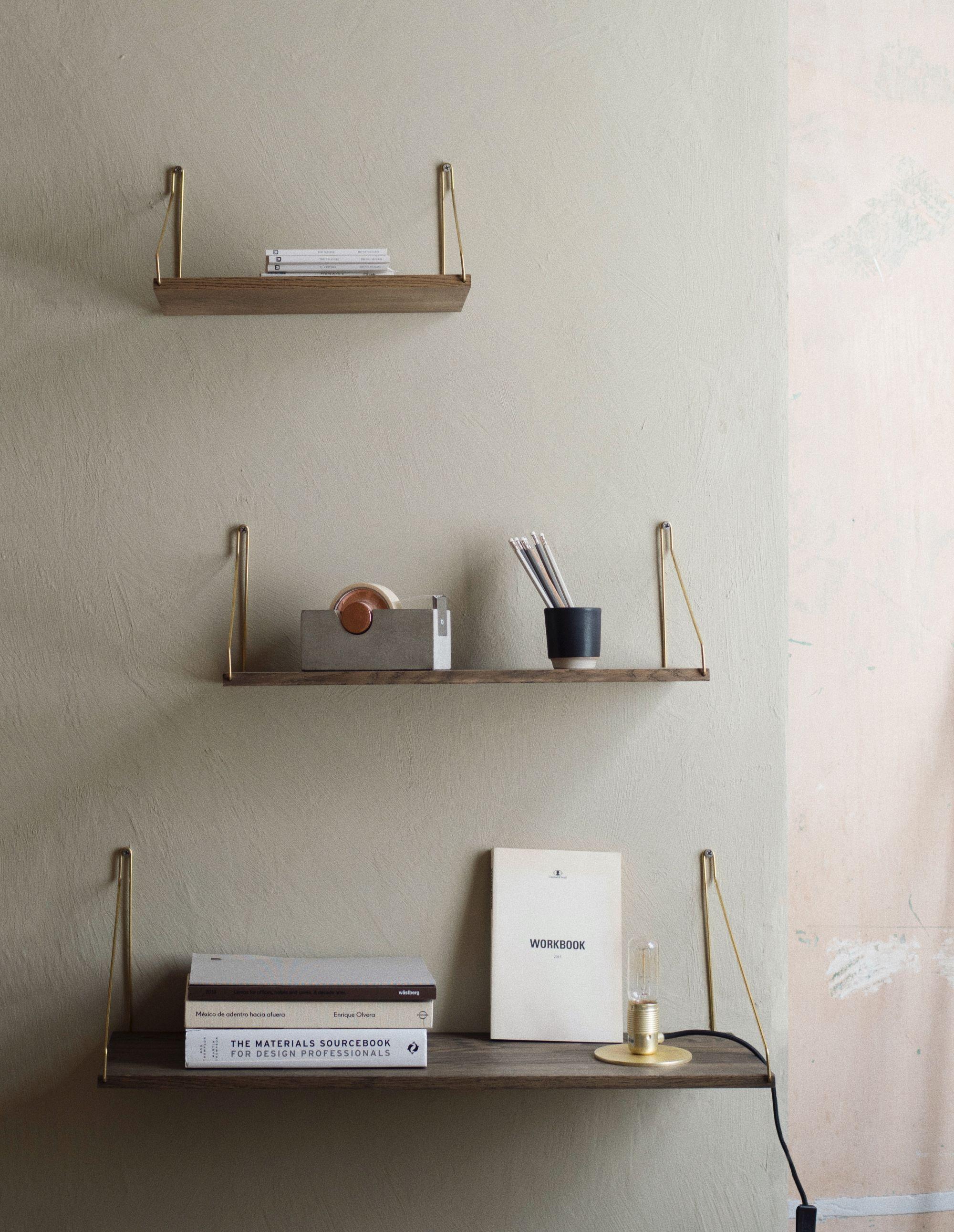 - Eiken plank | messing beugels | Deena Design | massief | muur