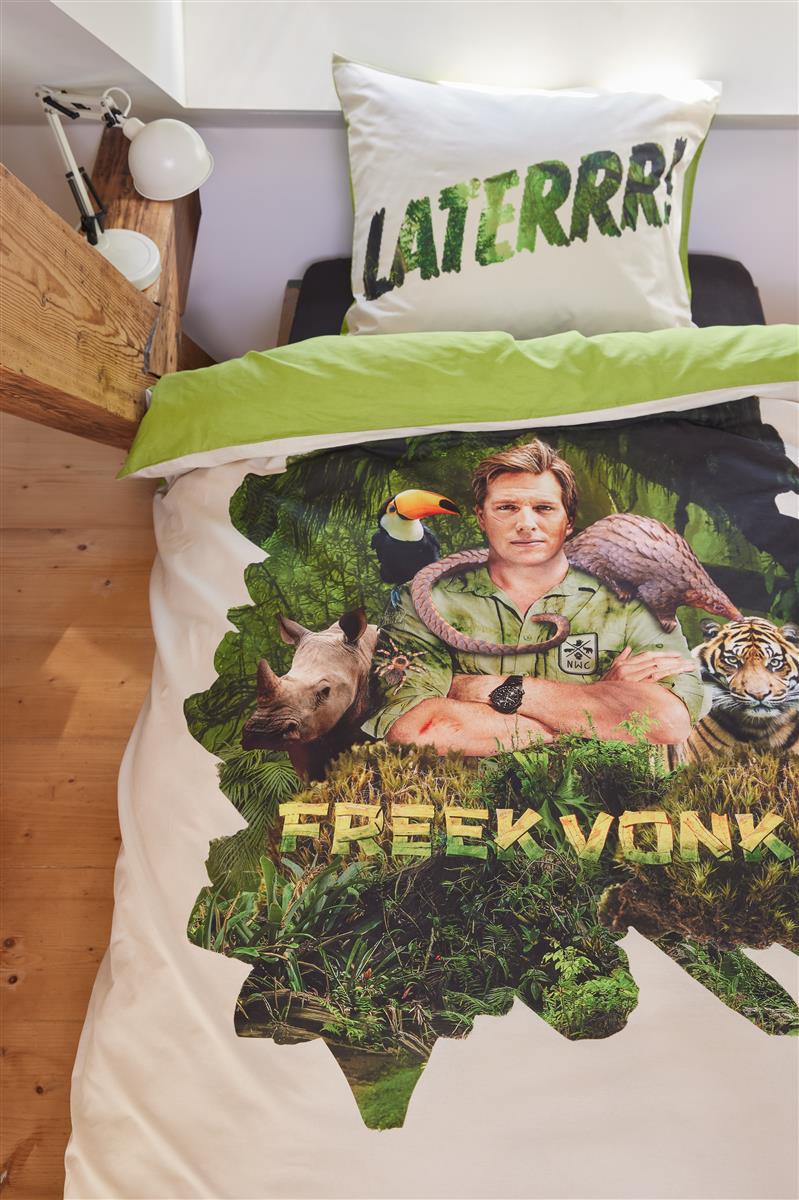 Het dekbedovertrek is gemaakt van 100% katoen. Katoen is een natuurlijk product dat ademt en goed vocht opneemt. Met zijn ontembare nieuwsgierigheid voor dieren en natuur neemt avonturier, presentator en Nederlands bekendste bioloog Freek Vonk, kinderen en volwassenen mee op avontuur. Zijn missie is iedereen bewust te maken van de schoonheid en kwetsbaarheid van de aarde. En vol moed en vastberadenheid reist hij hiervoor de wereld over, op zoek naar de mooiste plekken en meest bijzondere verhalen.Het bedtextiel van Freek Vonk wordt geproduceerd door Bedding House, trotse partner van Better Cotton.