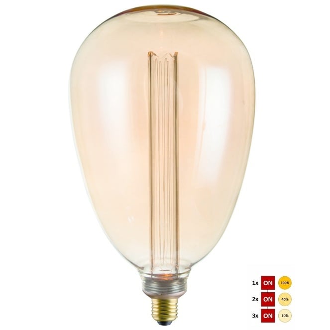 Een sfeervolle XXL led lamp die is uitgevoerd met een 3 stappen dimmer. De 3 stappen dimmer kan je gewoon met je eigen muur schakelaar bedienen. De 3 lichtsterktes zijn 170 - 80 - 20 Lumen.