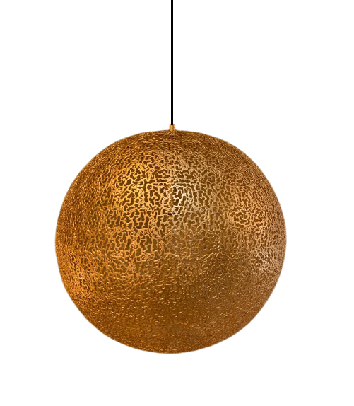 In deze hanglamp gaat een lichtbron met een E27-fitting. Deze hanglamp wordt zonder lichtbron geleverd, zo kan je kiezen voor de lichtbron je wilt toepassen. Zowel de binnenkant als de buitenkant van de bol in uitgevoerd in de mooie warme kleur mat goud.