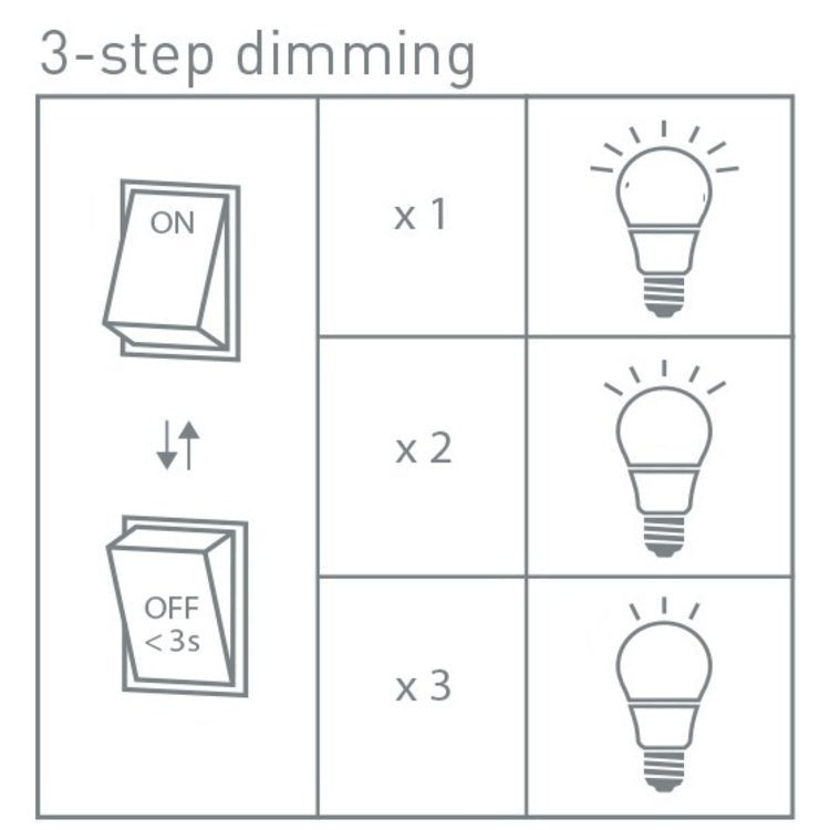 | Dimmer: | Inbegrepen 3-stappen dimmer |