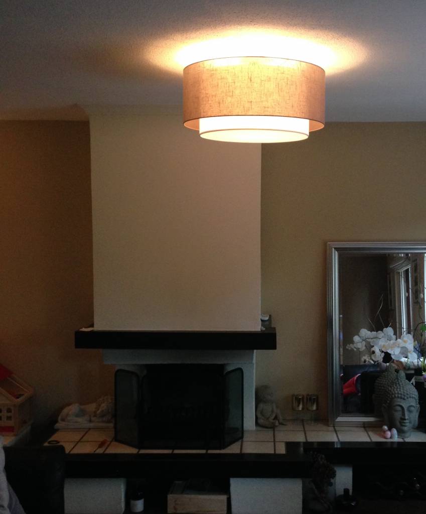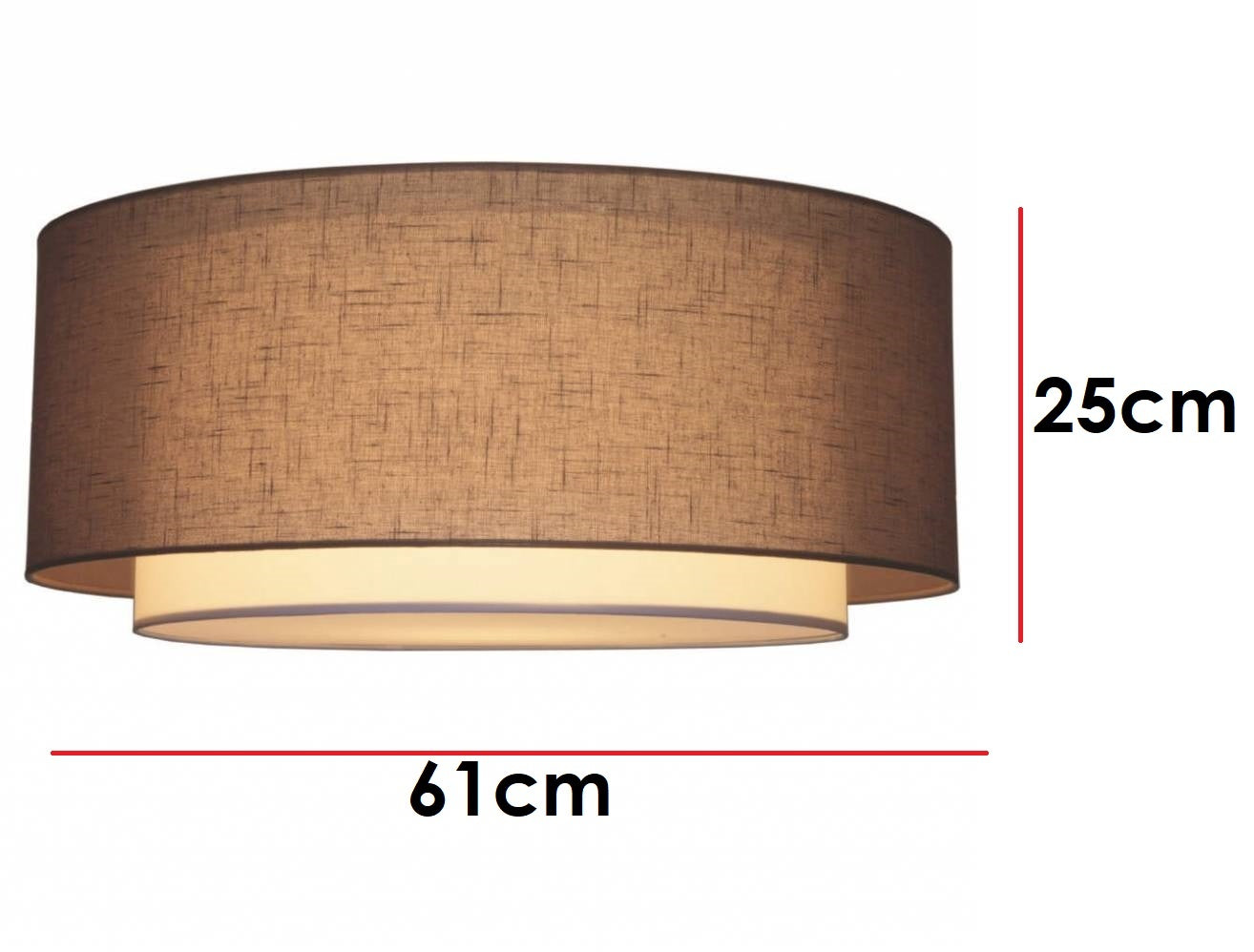Lichtbron: 1x60Watt max. 230Volt E27 (excl.) Materiaal: Stof Maten: Doorsnee 61cm Hoogte 25cm Maat kappen: Buitenkap: Ø61cm Hoogte:22cm Binnenkap: Ø47cm Hoogte:25cm