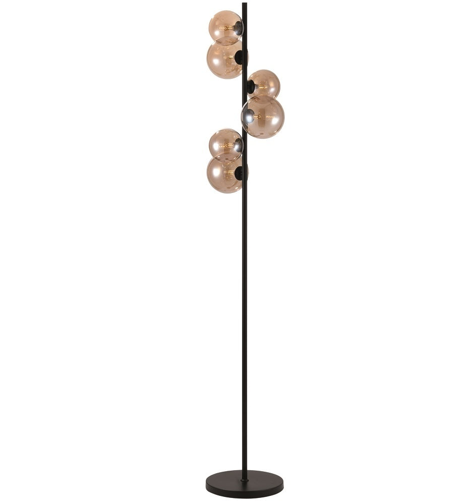 Vloerlamp Calcio Zwart - Amber Glas 6 Lichts