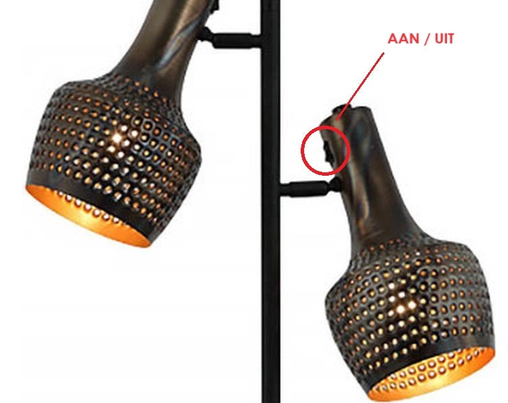Deze bijzondere vloerlamp Fuoco is ideaal voor in de woonkamer te gebruiken als leeslamp. Door de kleine gaatjes in de lampenkapjes geeft deze schemerlamp een mooi en sfeervol lichteffect in het interieur.
