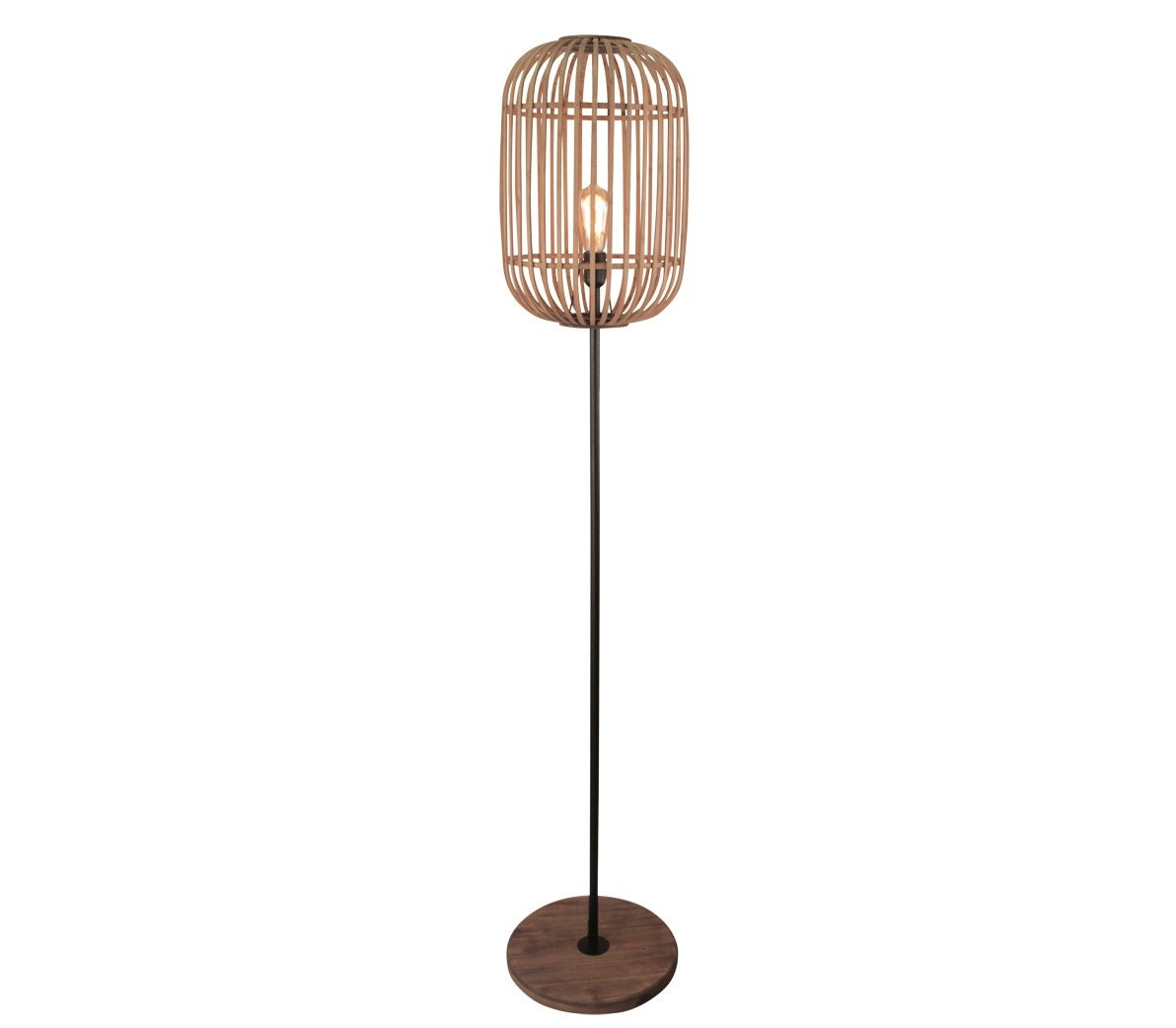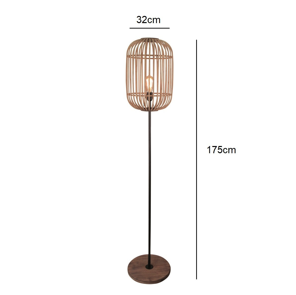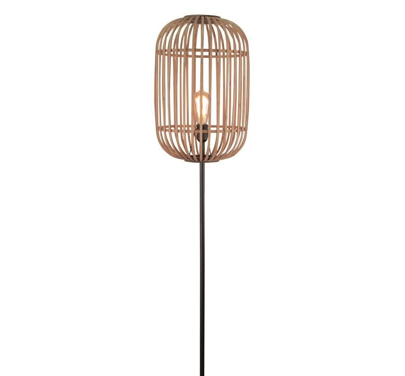 Deze trendy vloerlamp is uitgevoerd met een mat zwarte poot en een houten bruine voet. De rotan kap is 32 centimeter doorsnee hierdoor is de lamp helemaal in verhouding. Deze combinatie zorgt ervoor dat deze lamp thuis hoort in onze top collectie.
