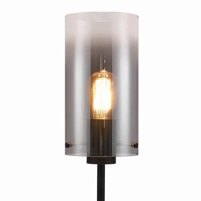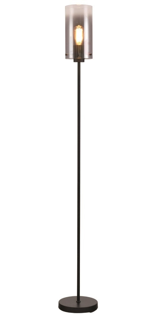 Deze prachtige vloerlamp komt helemaal tot zijn recht in het interieur van vandaag. De strakke mat zwarte voet en het smoke glas dat langzaam overloopt naar een helder deel geeft deze lamp een extra luxe uitstraling.